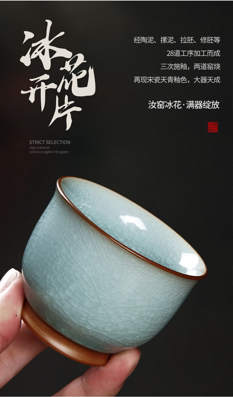 Tangfeng Ru Kiln Master Cup Single Cup Kung Fu Tea Cup Ceramic Tea Cup Tea Set Personally Used High-end Ice Flower Ice Crack Cup Ice Flower Belly Measuring Cup