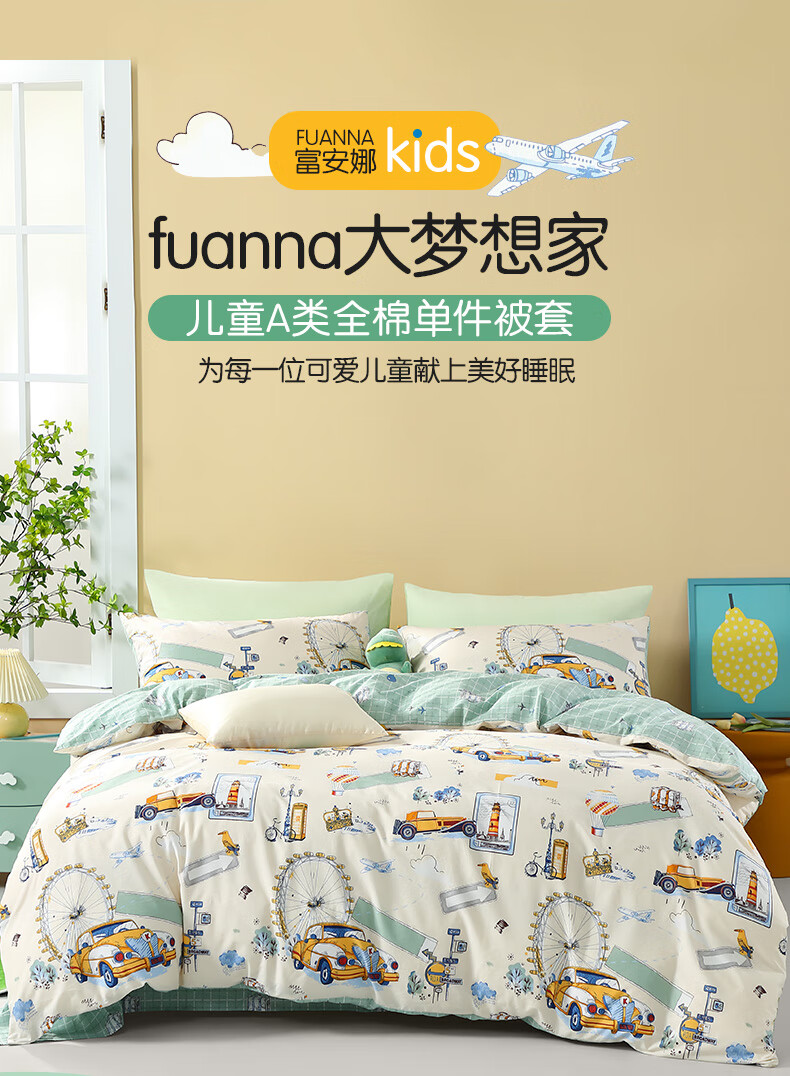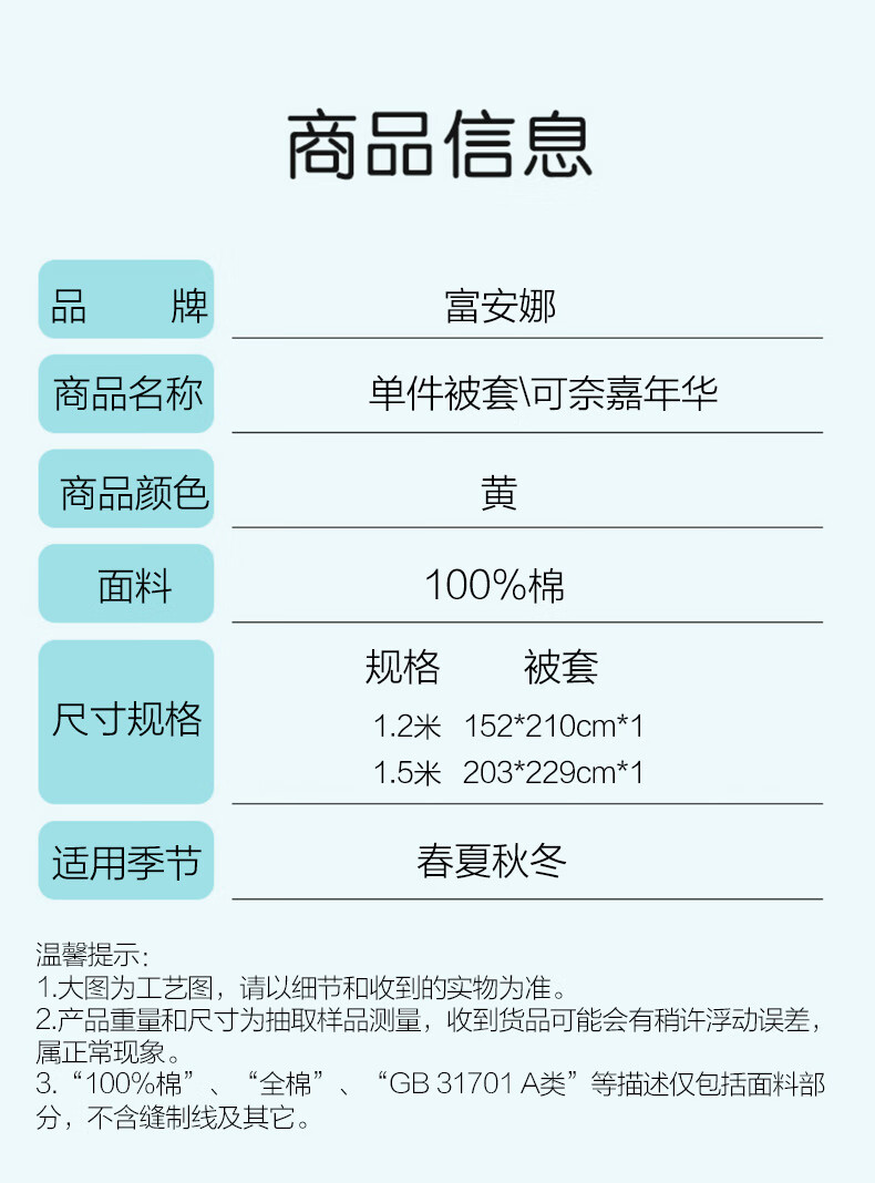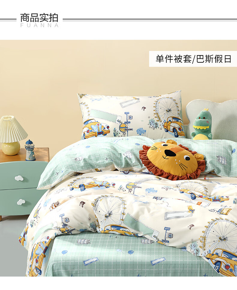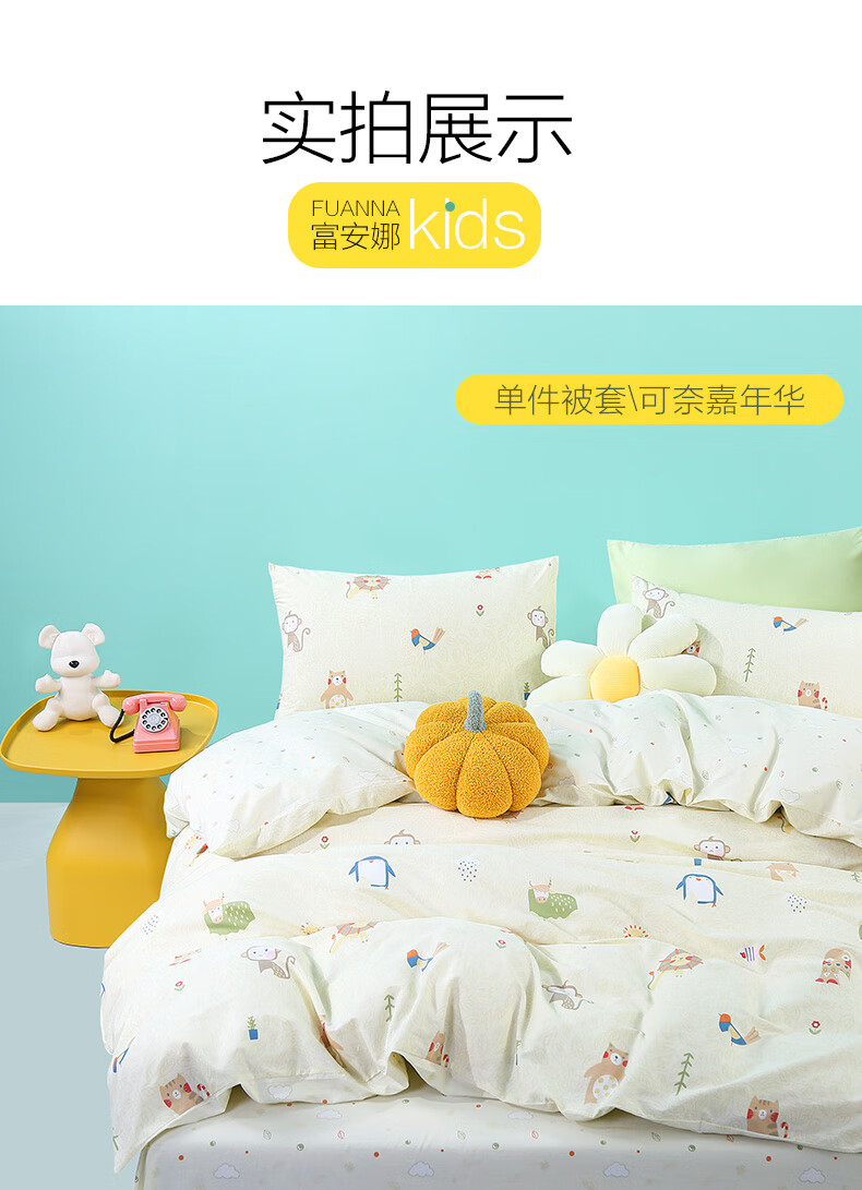 Fuana Home Textiles Children's Pure Cotton Single Piece Quilt Cover Student Dormitory Cotton Mattress Cover Single and Double Home Use Canai Yellow 40S Cotton + Category A Care 1.5 Meter Double (Quilt Cover) 203cm*229cm