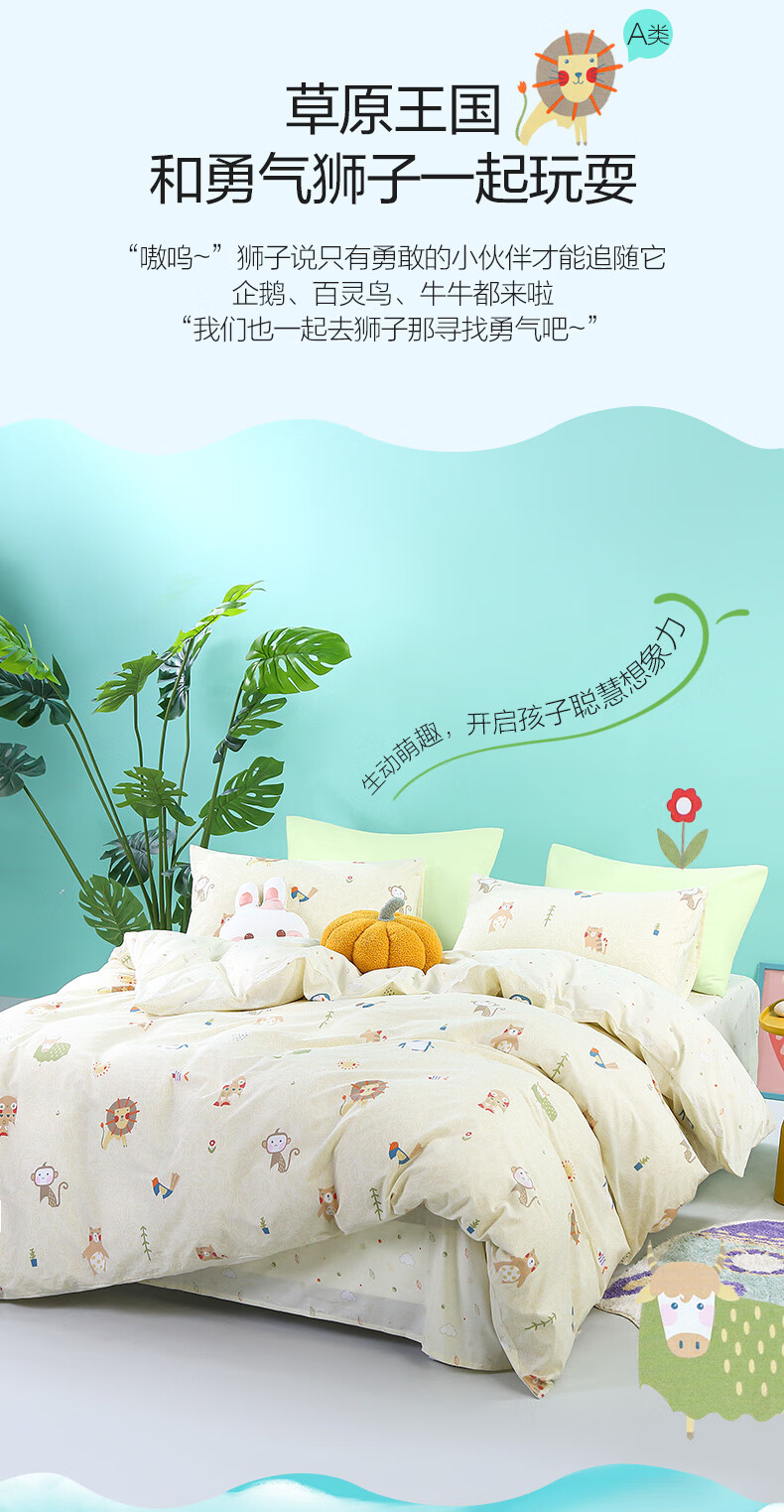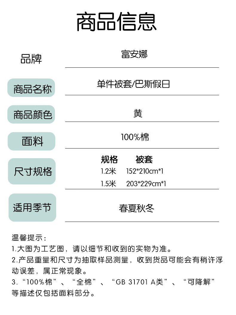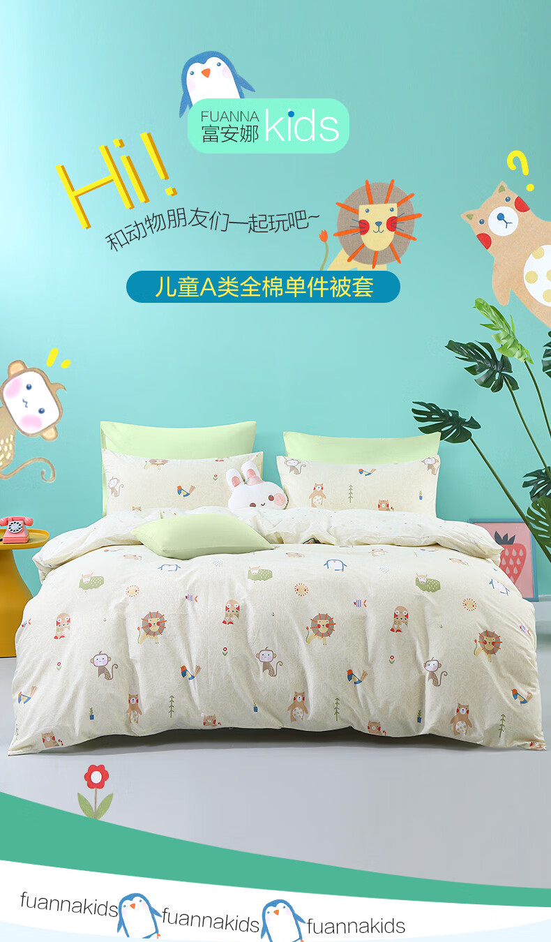 Fuana Home Textiles Children's Pure Cotton Single Piece Quilt Cover Student Dormitory Cotton Mattress Cover Single and Double Home Use Canai Yellow 40S Cotton + Category A Care 1.5 Meter Double (Quilt Cover) 203cm*229cm