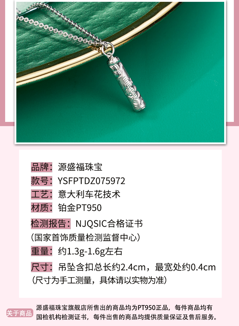 Yuan Shengfu's new PT950 boutique fashion perfume pendant platinum pendant atmospheric platinum necklace pendant for women 3.44g platinum perfume pendant