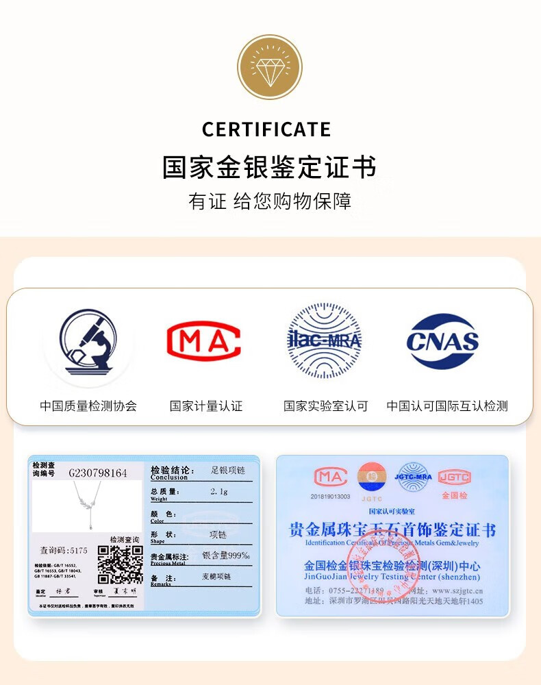 AIF Suisui Ping An Wheat Sui 999 Pure Silver Necklace for Women 2025 New Valentine's Day Birthday Gift for Girlfriend and Wife Platinum/Gift Box/Seven Warehouse Delivery/Next Day Delivery