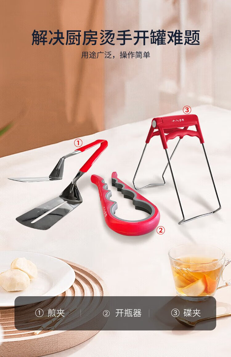 Shibazizuo anti-scalding plate clamp, bowl remover, steaming dish clamp, kitchen steak clamp, barbecue can opener, plate lifter 3-piece set, kitchen tool three-piece set TL-001