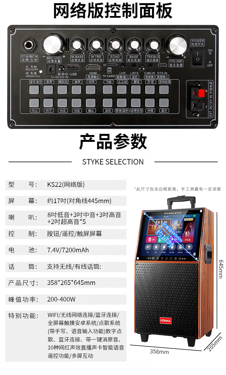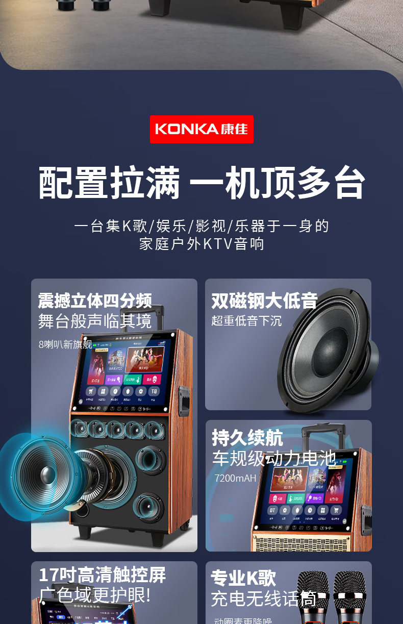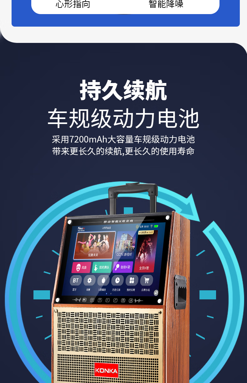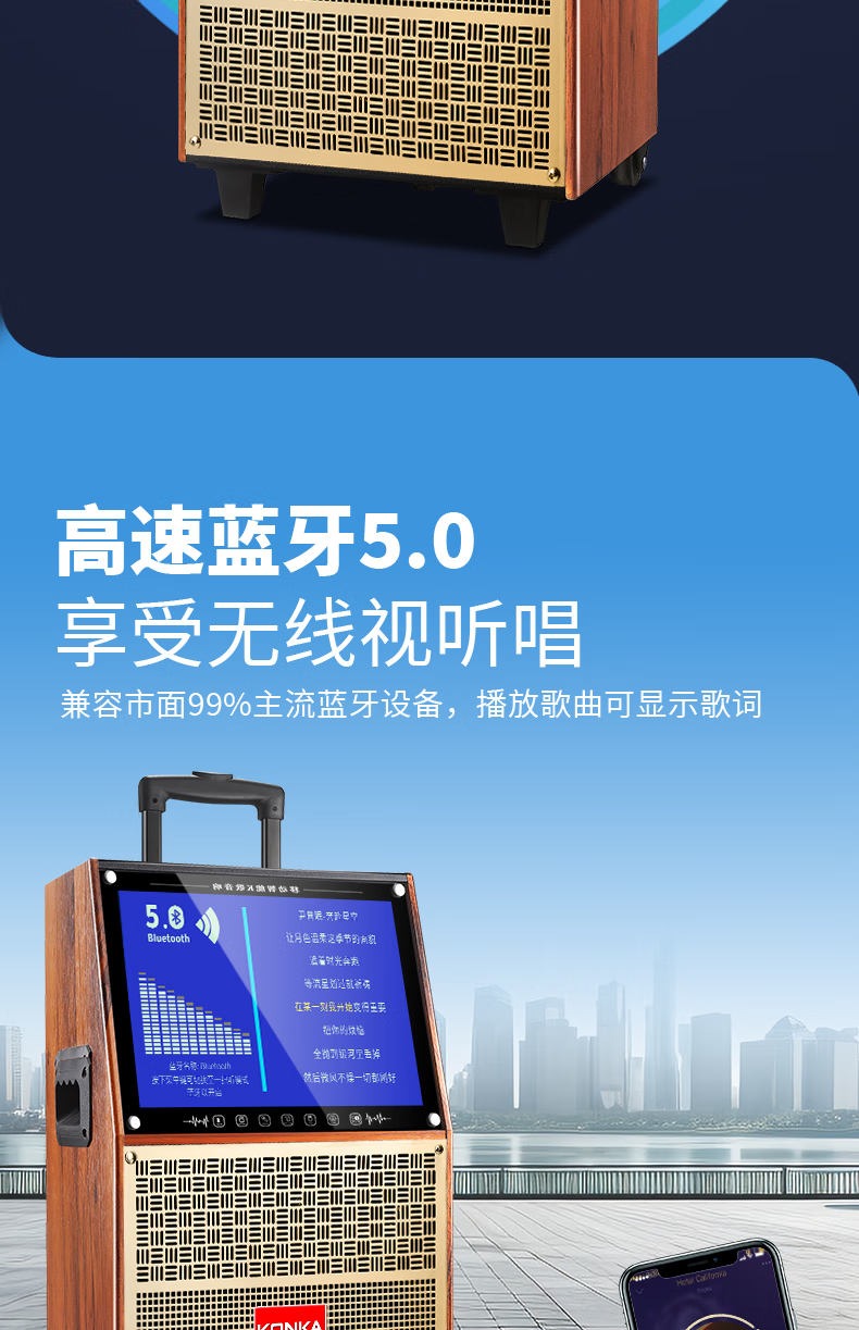 KONKA outdoor square dance trolley audio with display screen home touch screen portable wifi mobile ktv trolley speaker video and song all-in-one machine 29-inch touch screen version + dual microphones + 32GU disk