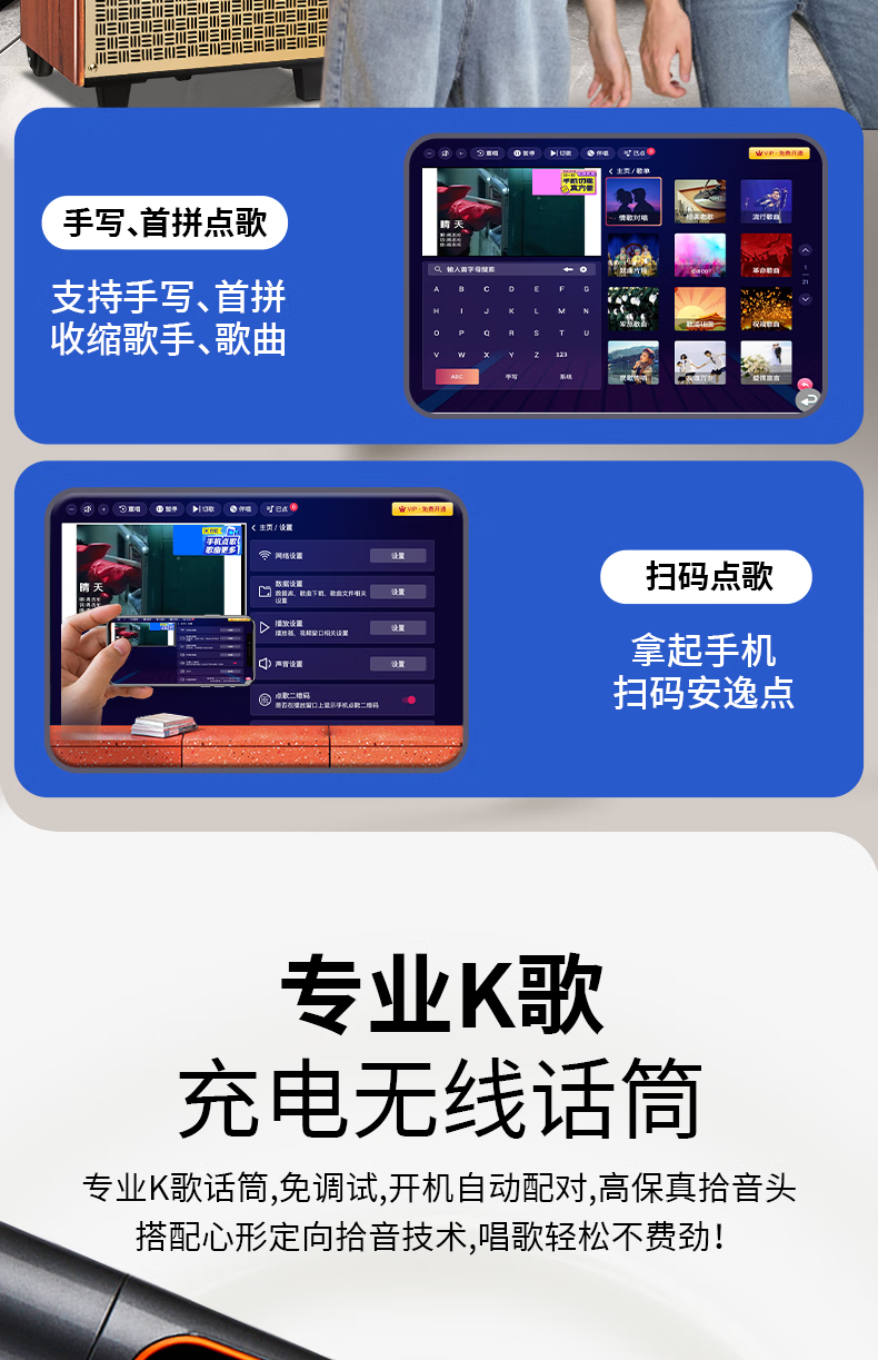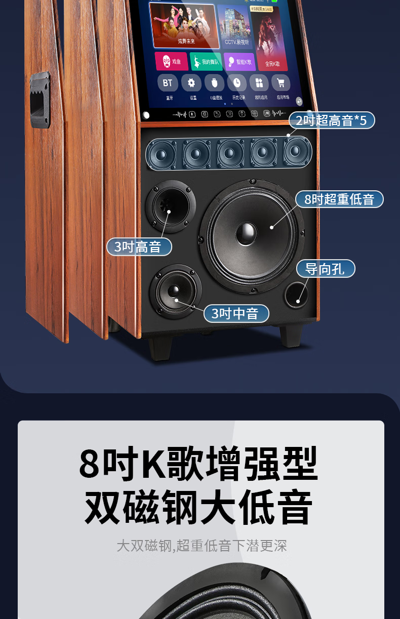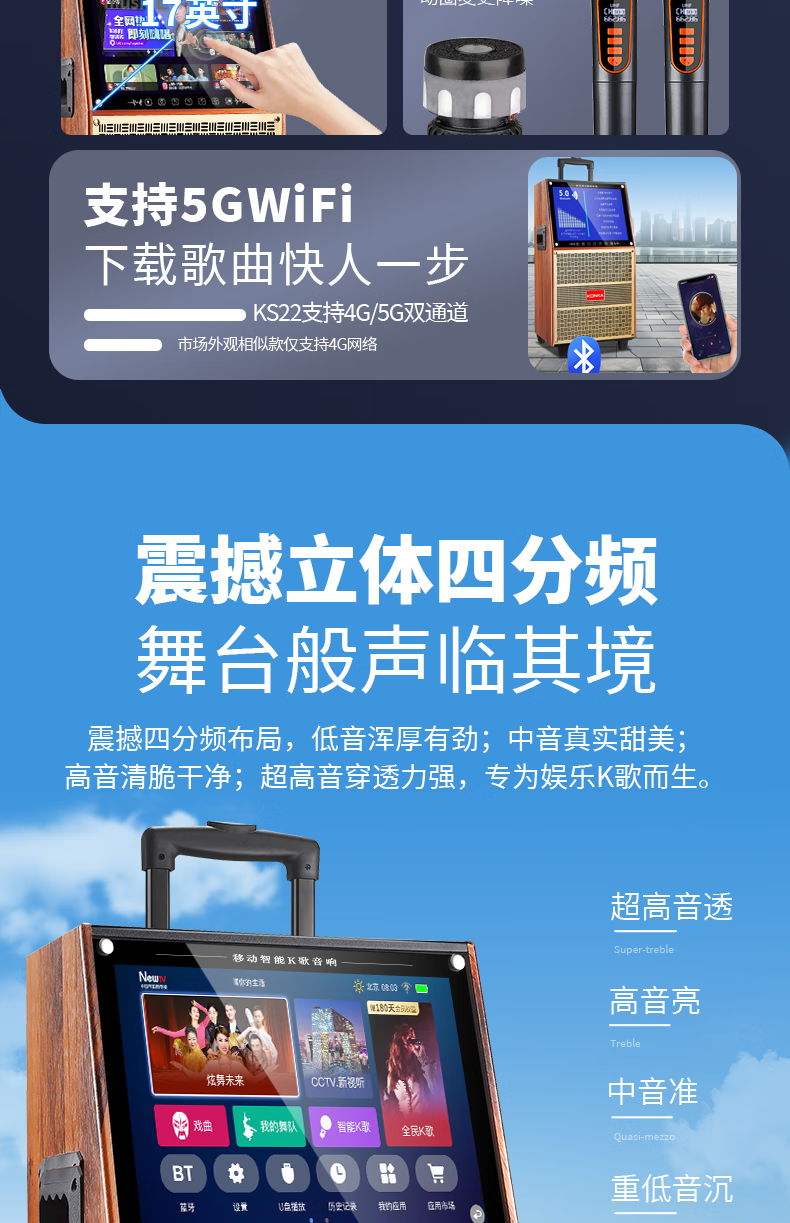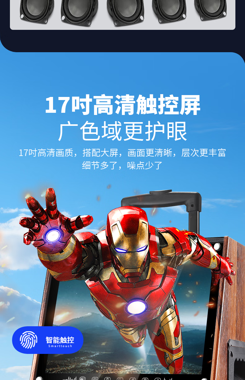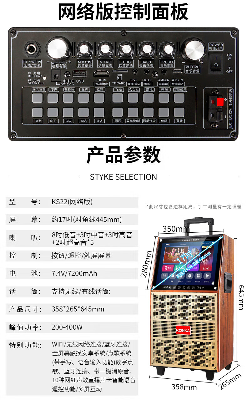 KONKA outdoor square dance trolley audio with display screen home touch screen portable wifi mobile ktv trolley speaker video and song all-in-one machine 29-inch touch screen version + dual microphones + 32GU disk