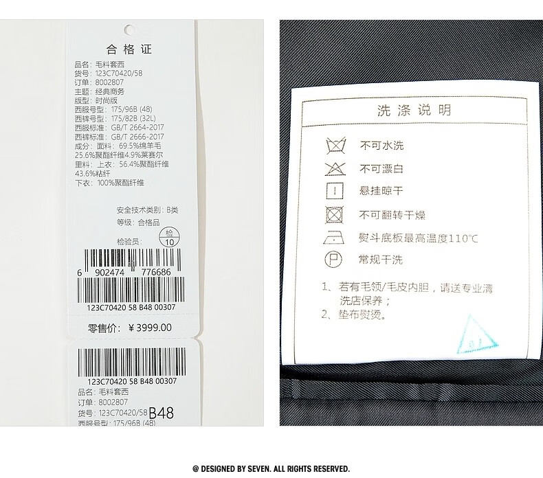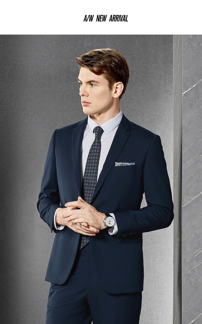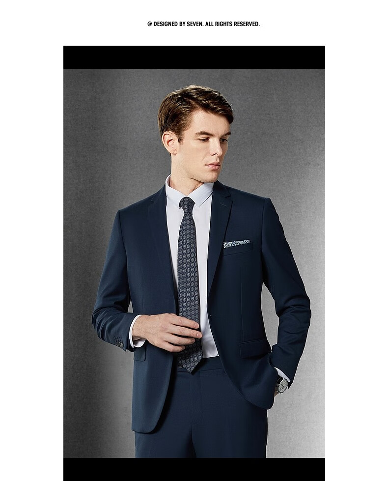 Qipai Wool Men's Suit Suit Men's Autumn and Winter New Business Professional Suit Groom Wedding Dress Suit Dark Blue B48 (175/96B) (32L)