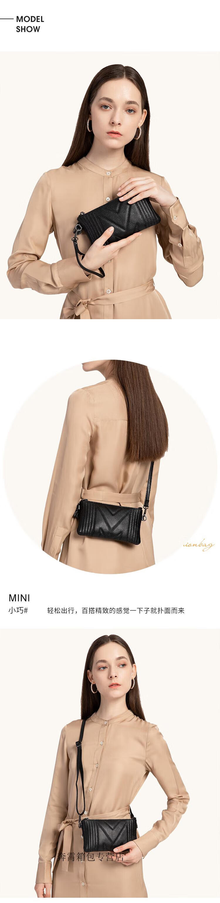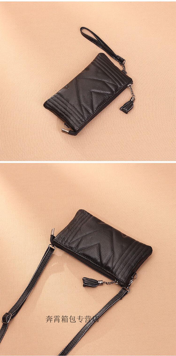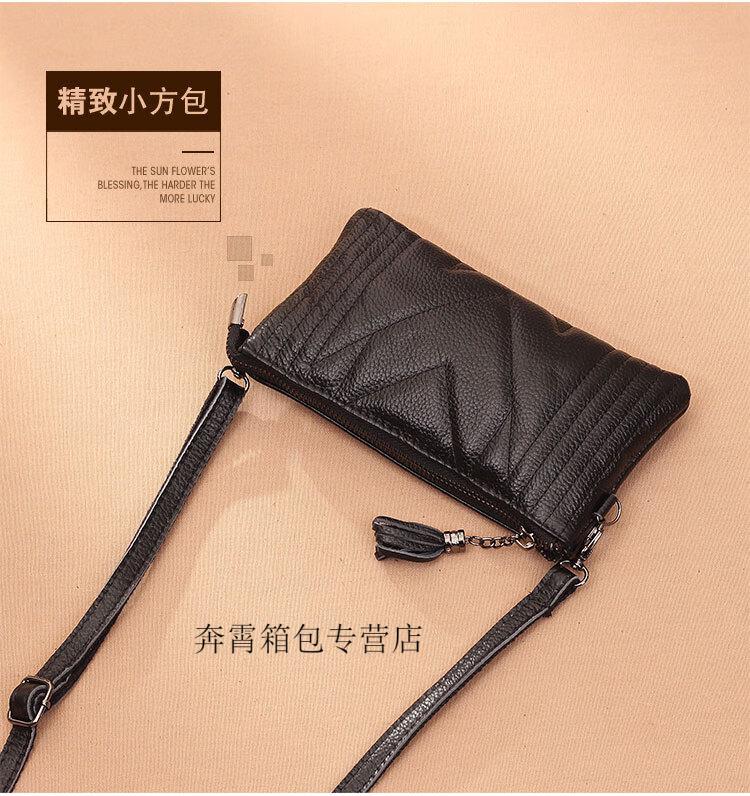 Kangaroo (KANGAROO) Summer Genuine Leather Crossbody Bag Women's Bag 2025 Chinese Valentine's Day Versatile Handbag Mom Soft Leather Mini Hand Mobile Phone Small Bag Black