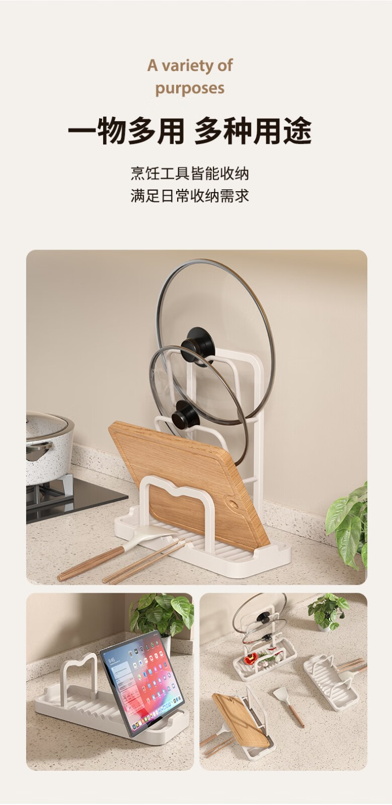 Cobbe pot lid rack countertop space aluminum kitchen storage rack multi-functional household storage rack cutting board rack chopping board rack Yabai-single pole single layer pot lid rack