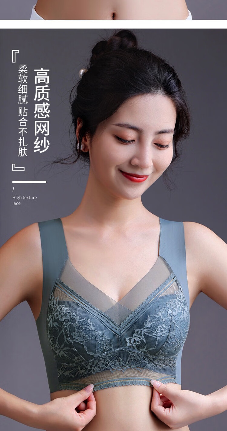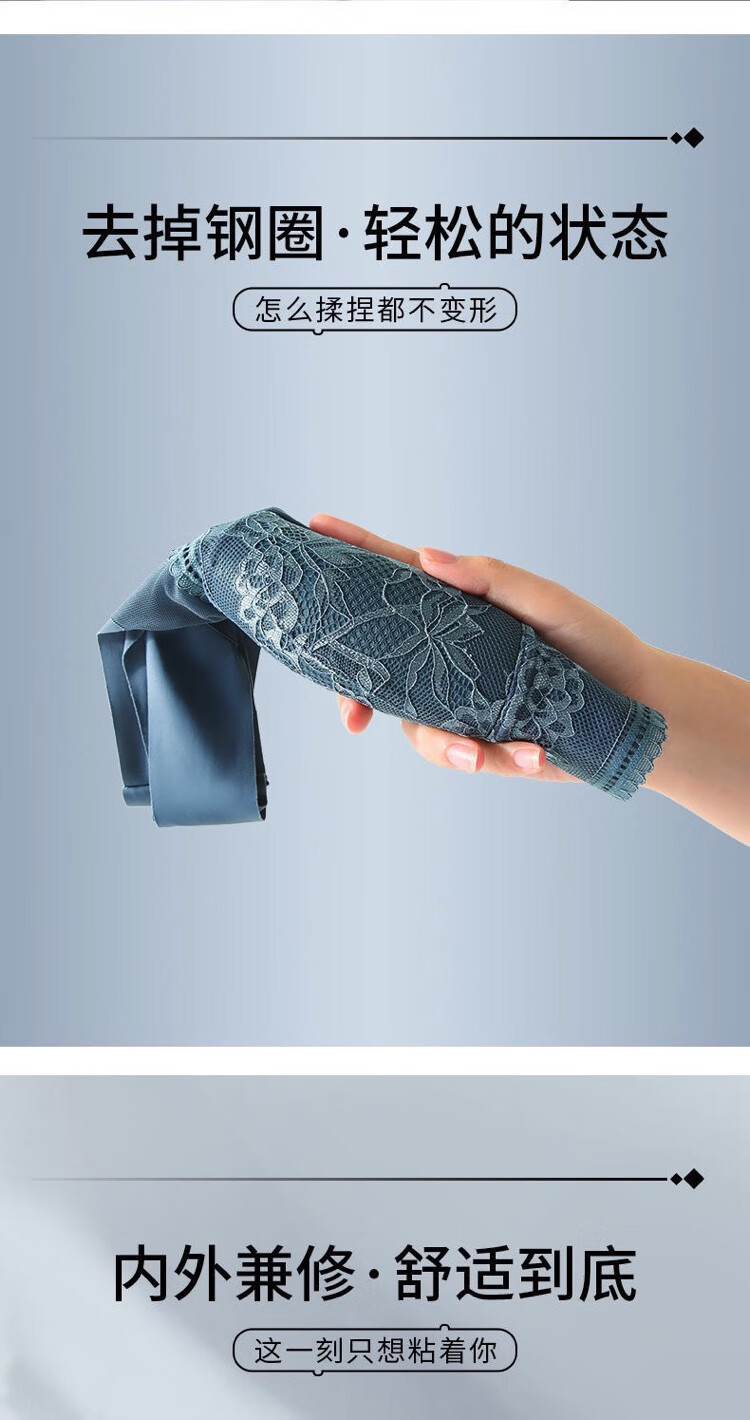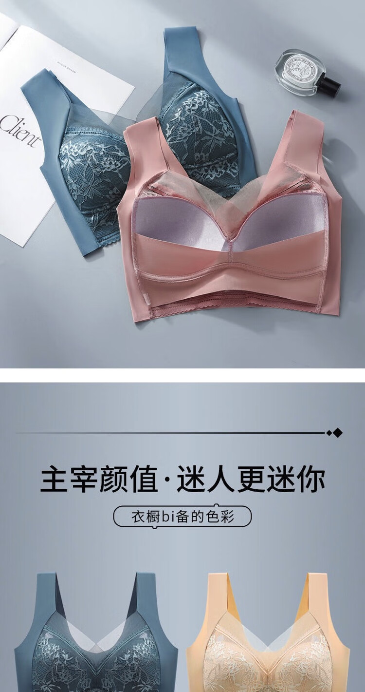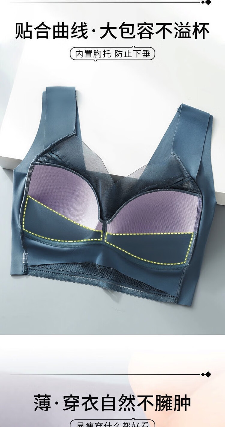 Women's Lace Wrapped Breast and Beautiful Back Bra, Push-up Wireless Fixed Cup Top-Up Seamless Vest Style Sleeping Bra, Dark Blue 2L 100-120Jin Jin is equal to 0.5kg
