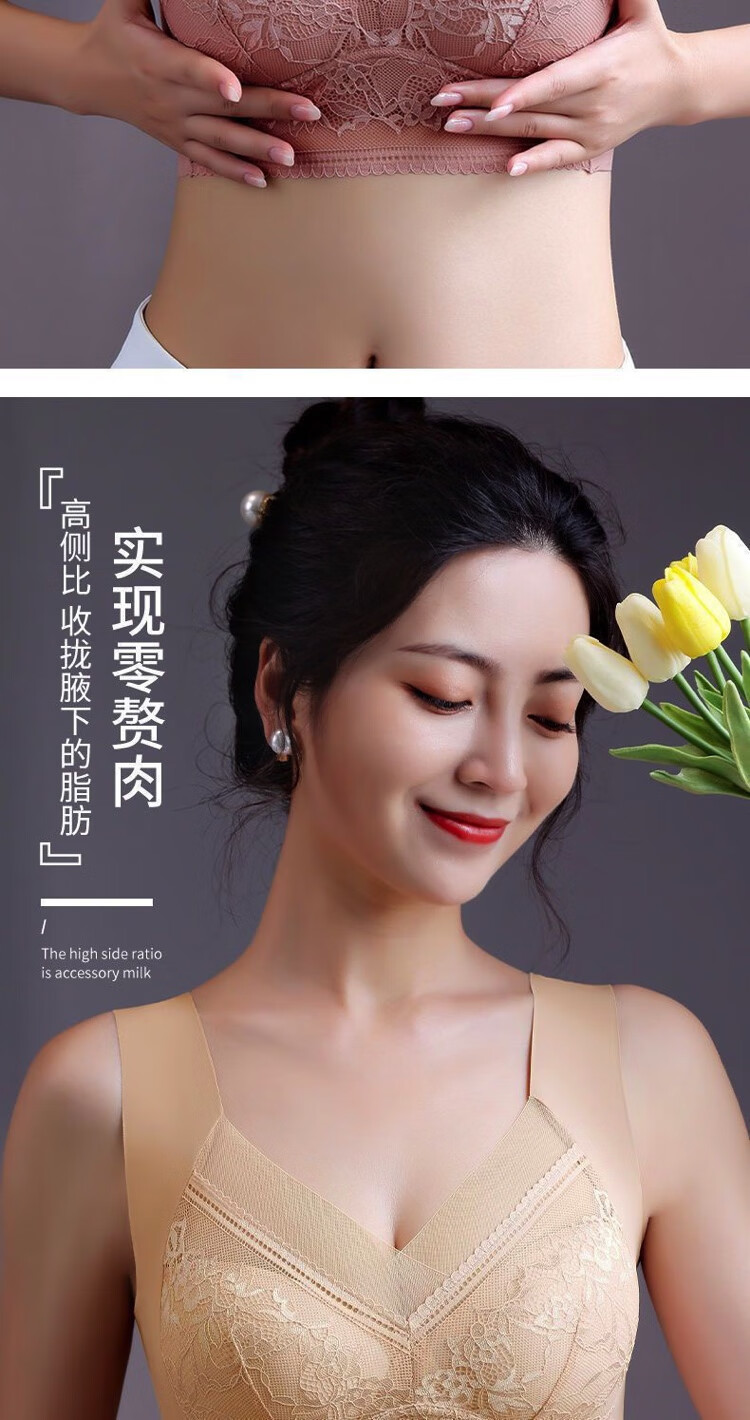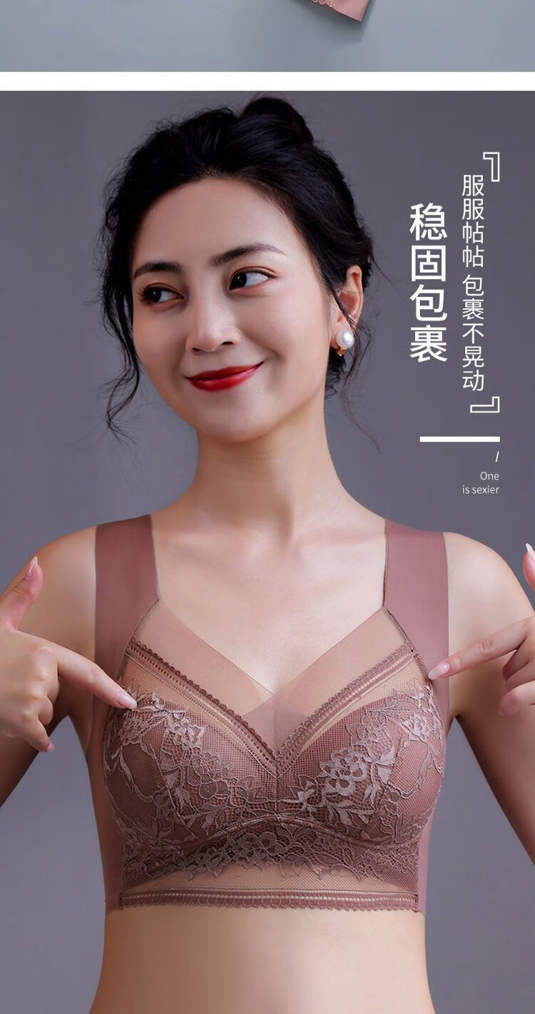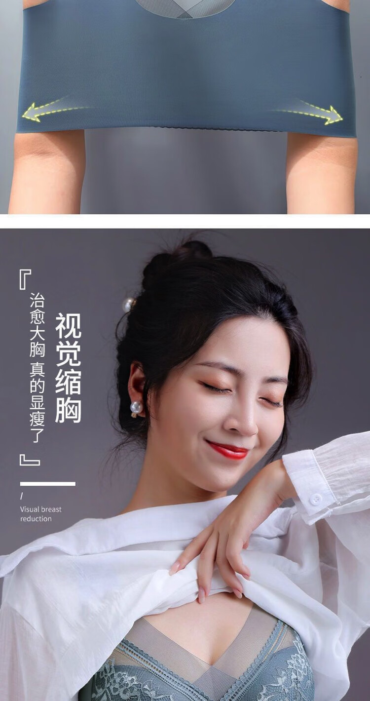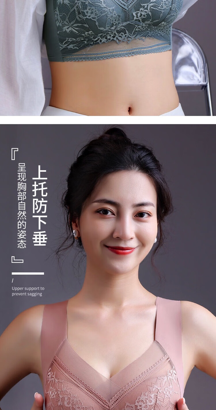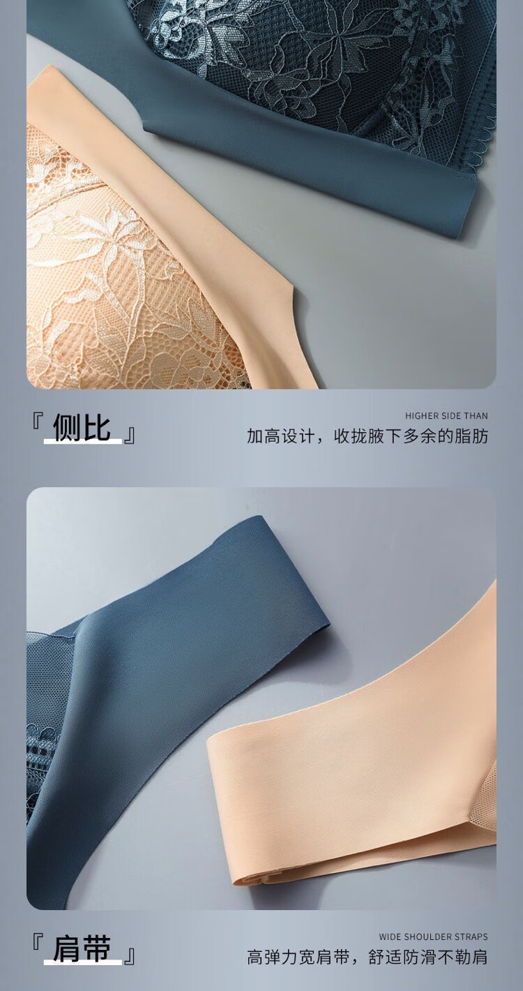 Women's Lace Wrapped Breast and Beautiful Back Bra, Push-up Wireless Fixed Cup Top-Up Seamless Vest Style Sleeping Bra, Dark Blue 2L 100-120Jin Jin is equal to 0.5kg