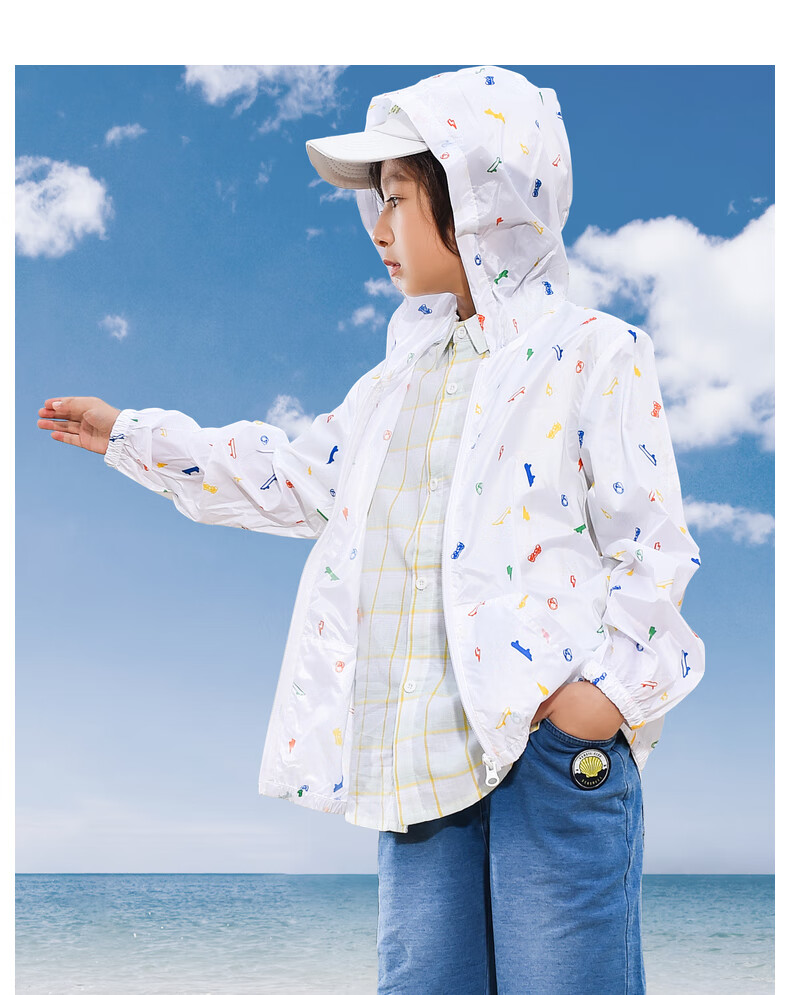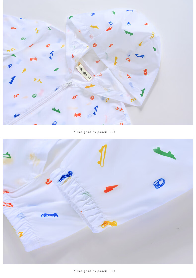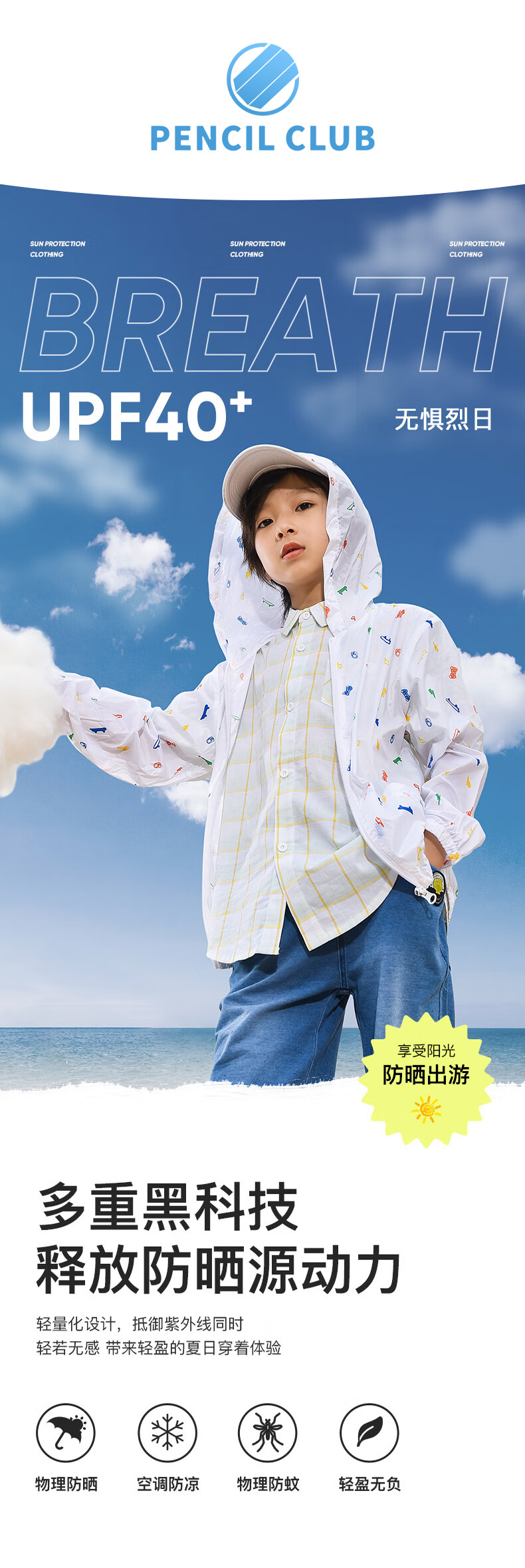 Pencil Club Children's Clothing 2025 Spring and Summer New Boys' Sun Protection Clothes Children's Jackets Medium and Large Children's Air-conditioned Clothing Tops White 100 cm