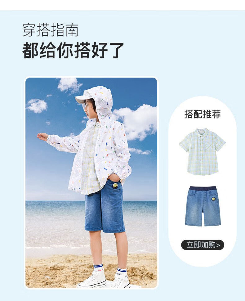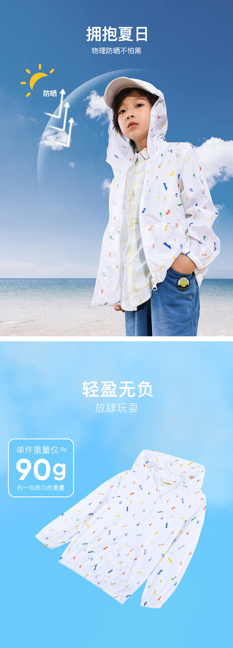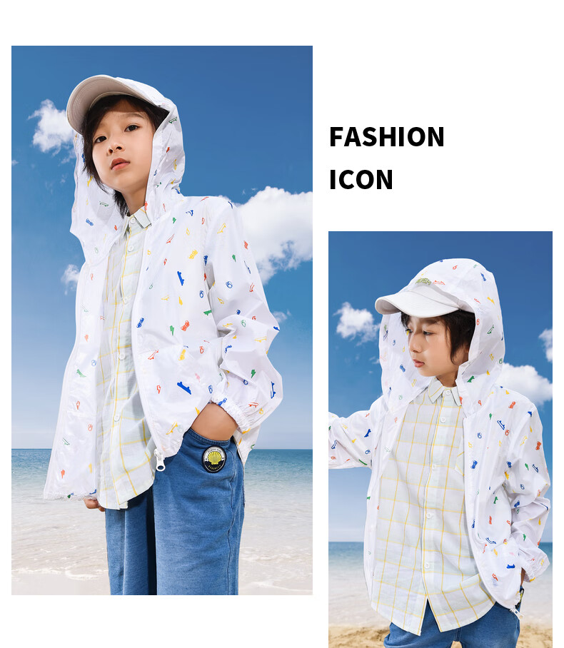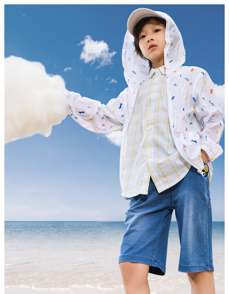 Pencil Club Children's Clothing 2025 Spring and Summer New Boys' Sun Protection Clothes Children's Jackets Medium and Large Children's Air-conditioned Clothing Tops White 100 cm