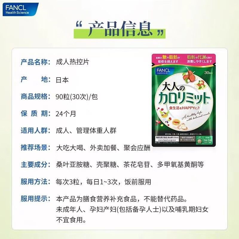 FANCIL Heat Control Tablets 90 tablets/bag 30-day supply Natural high-efficiency sugar-control and fat-suppressing mulberry leaf extract Enjoy eating happily without fear of calories SWISS Optimization Curve Slimming Pills 90 tablets/bag