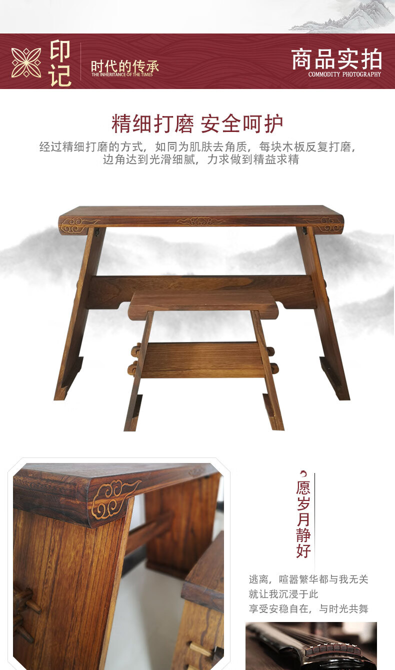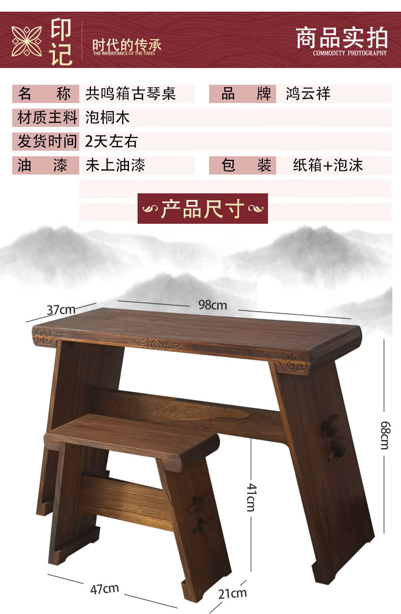 Jingyun guqin table and stool Xiangyun antique guqin table Chinese study table calligraphy and painting table removable portable paulownia wood assembly piano table + stool complete set