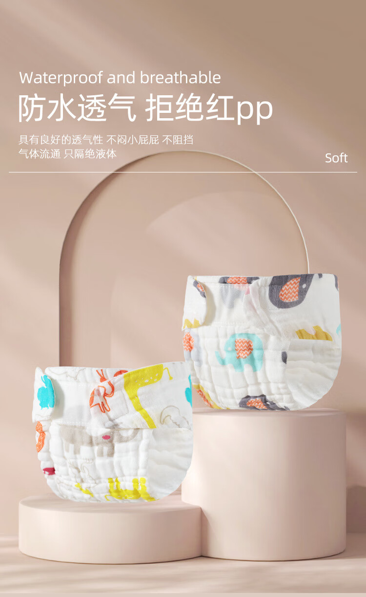 Silky soft gauze diaper pure cotton washable baby urine meson newborn diaper baby diaper pants urine ring mustard seed summer cartoon baby boy 5 pack S size (0-3 months) 10Jin Jin is equal to 0.5 kg.