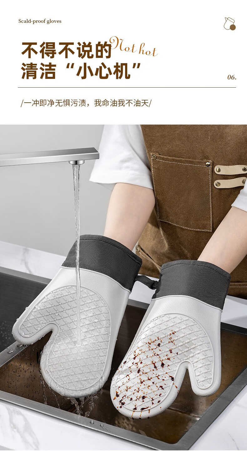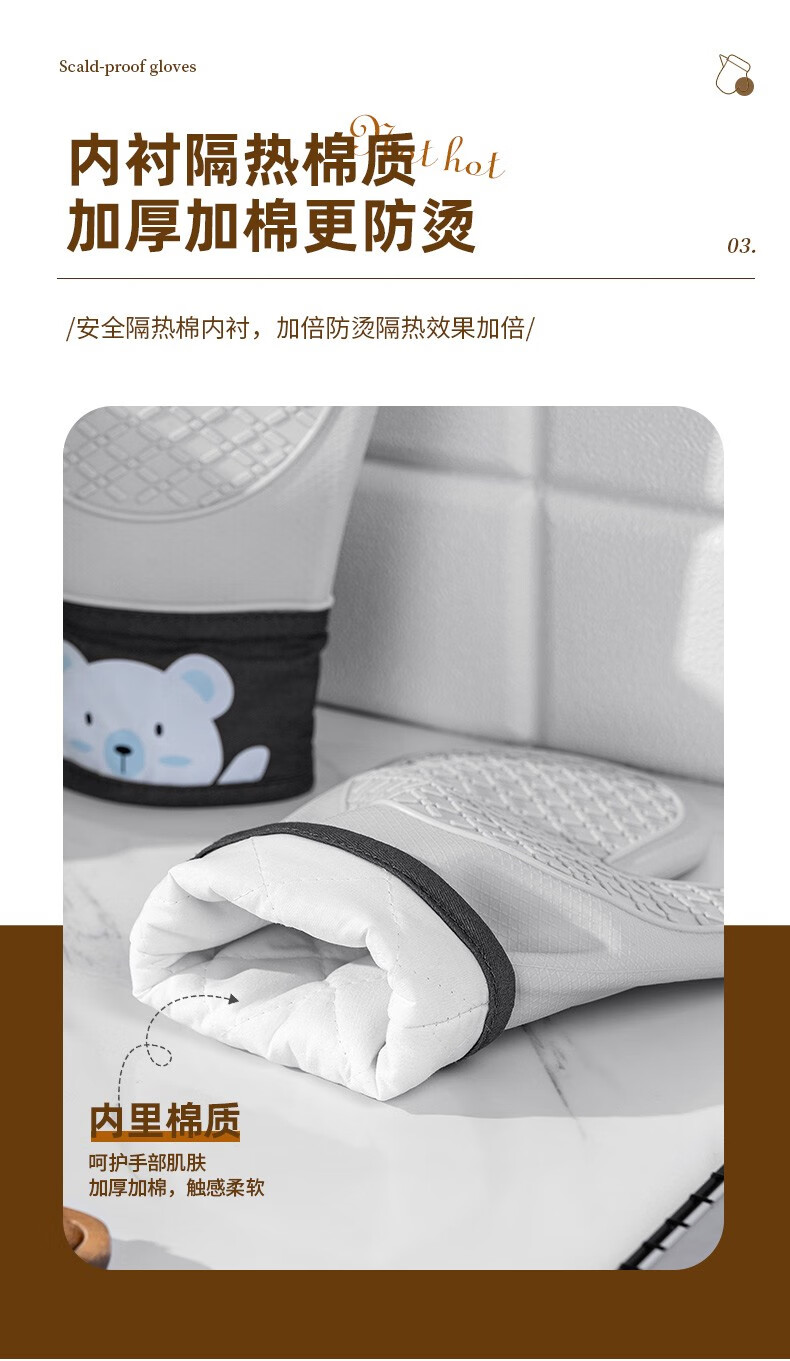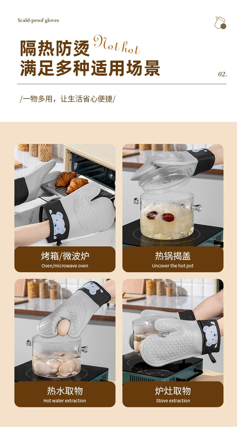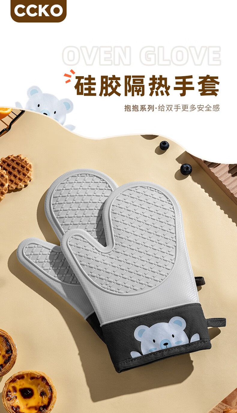 CCKO anti-scald gloves thickened double-layer heat-resistant high-temperature kitchen oven microwave oven baking special cotton silicone gloves anti-scald silicone gloves a pair