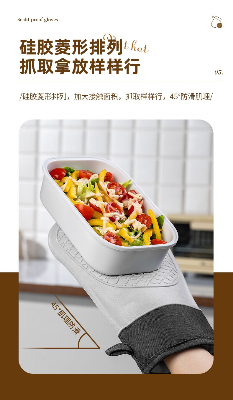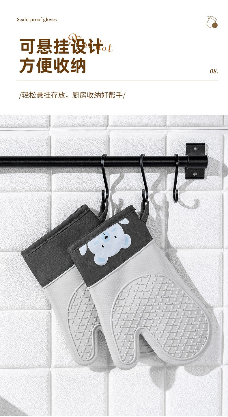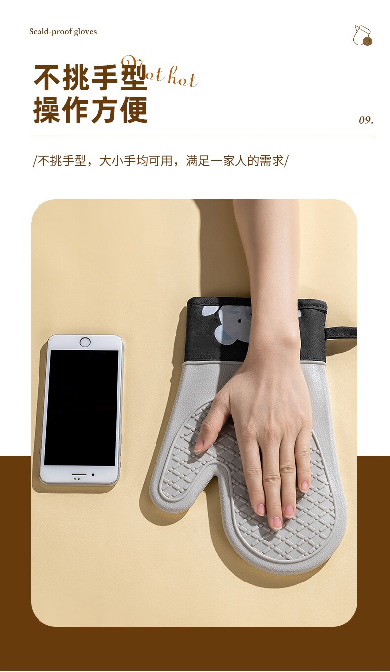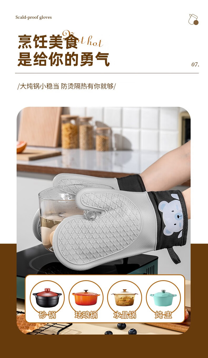 CCKO anti-scald gloves thickened double-layer heat-resistant high-temperature kitchen oven microwave oven baking special cotton silicone gloves anti-scald silicone gloves a pair