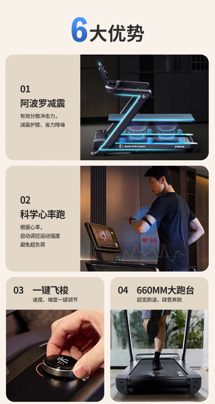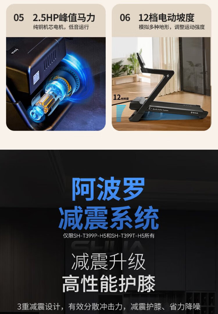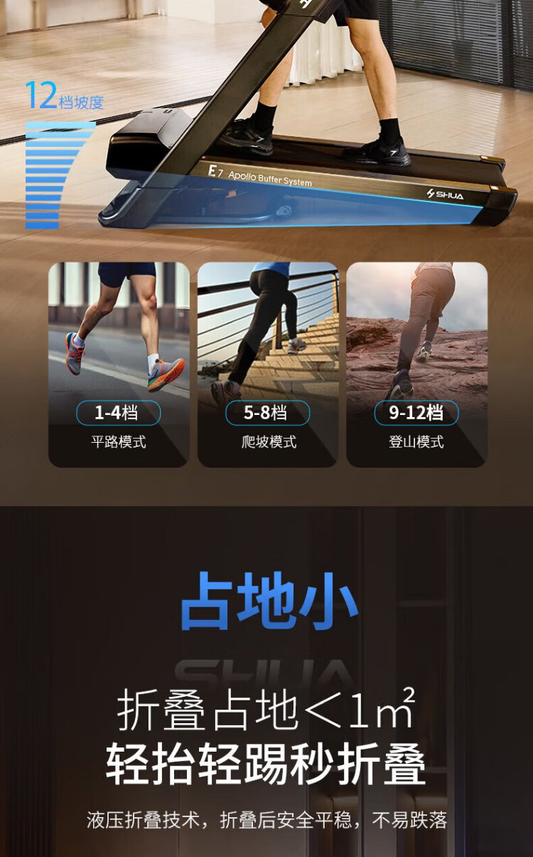 Shuhua (SHUA) Home Treadmill Home E7 Hill Climbing Walking Machine Apollo Shock Absorption Indoor Silent Foldable Marathon Training Edition - Apollo Shock Absorption/Shuttle Adjustment