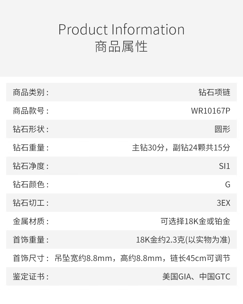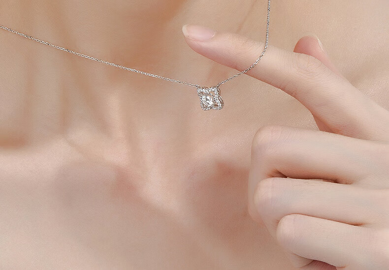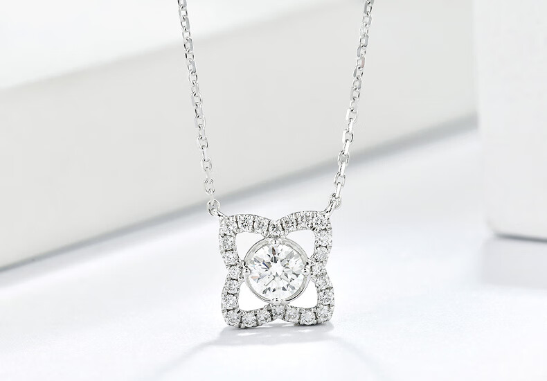 WithLove white 18K gold main diamond 30 points lotus pendant group set diamond necklace GIA real diamond gift for girlfriend, main diamond 30 points/G color/SI1 secondary diamond 15 points white 18K gold/spot