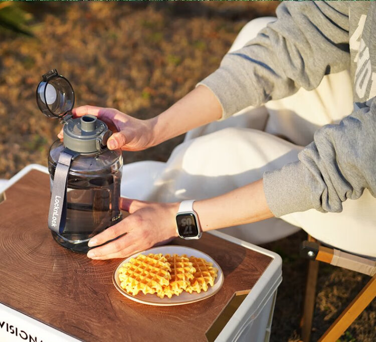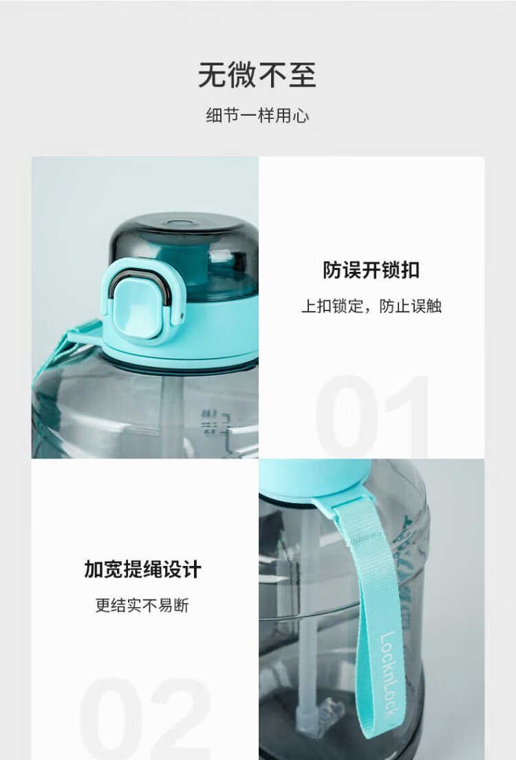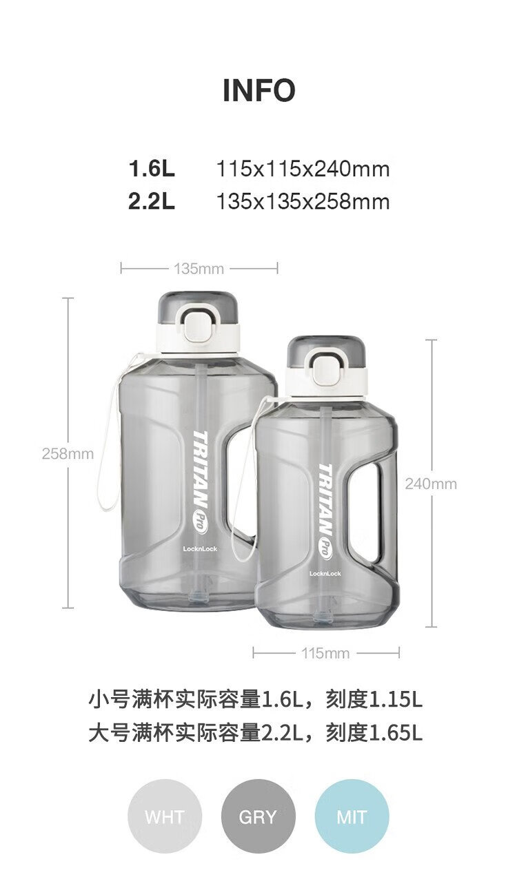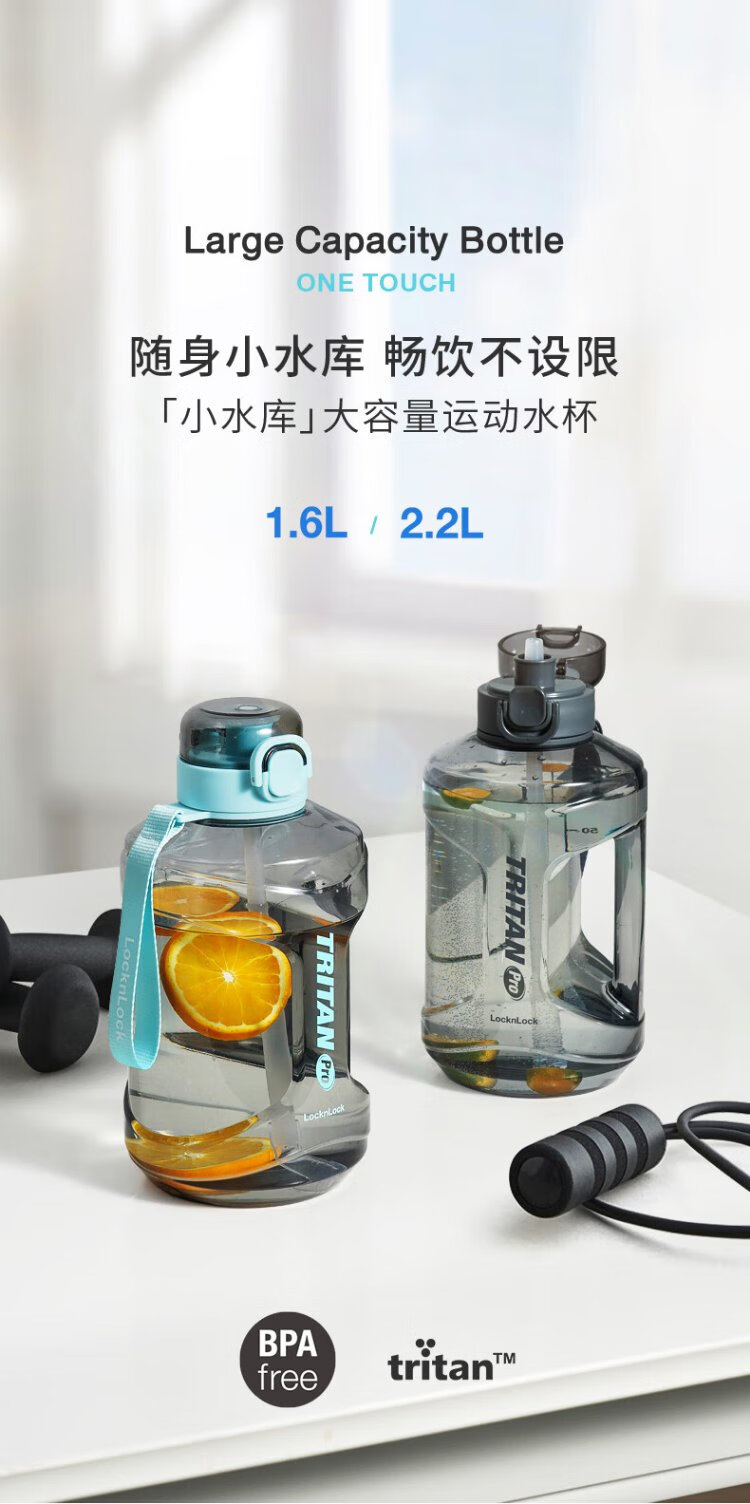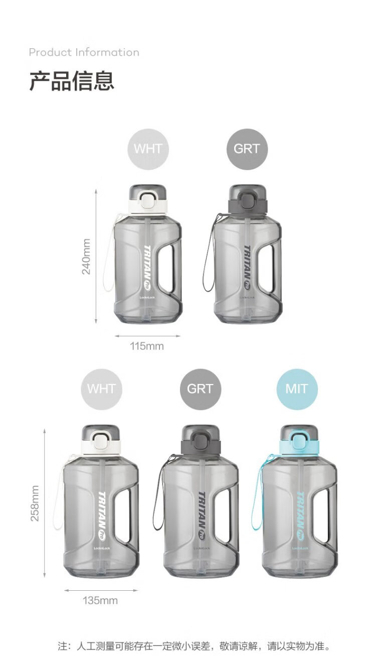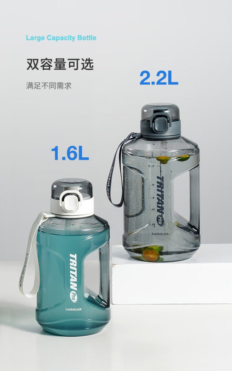 LOCK&LOCK Small Reservoir Le Cool Bucket Sports Water Bottle Fitness Outdoor Portable Large Capacity Water Cup Military Training Water Cup White-ABF886WHT- 1600ml