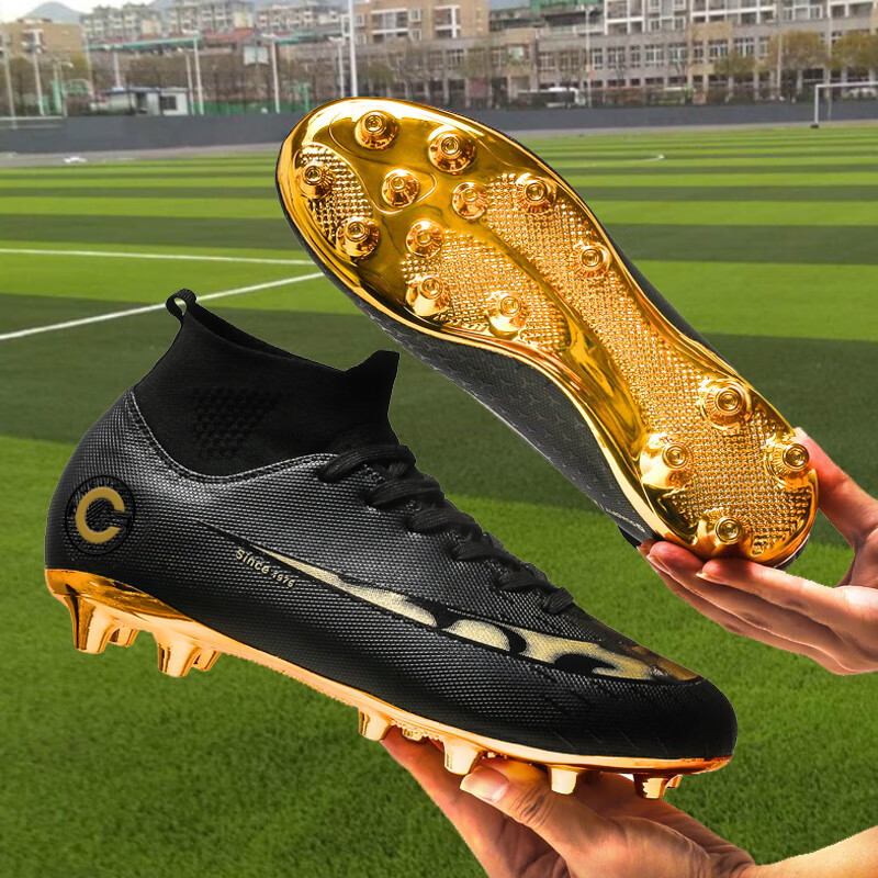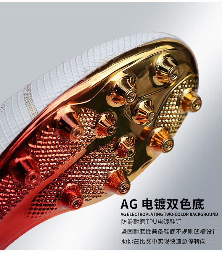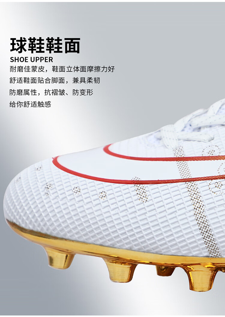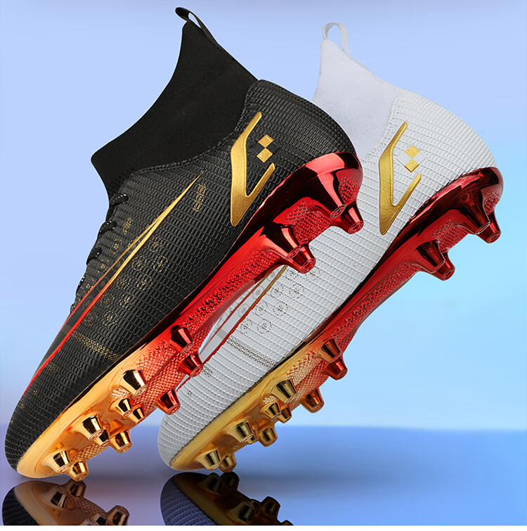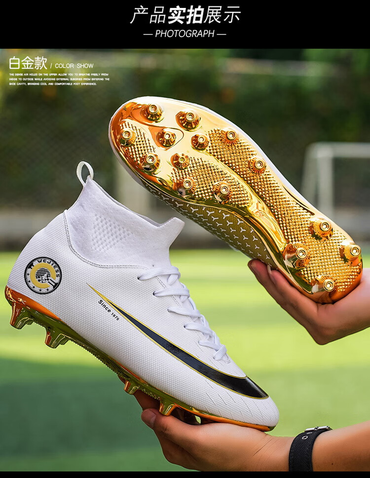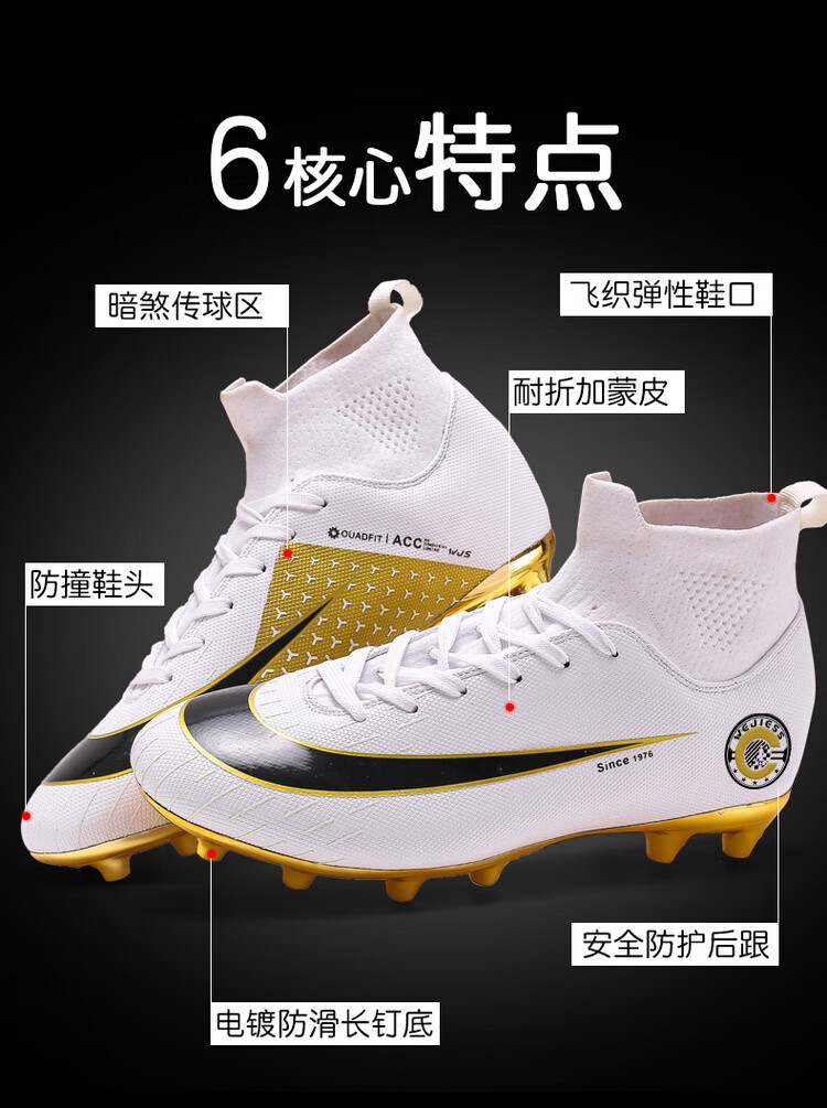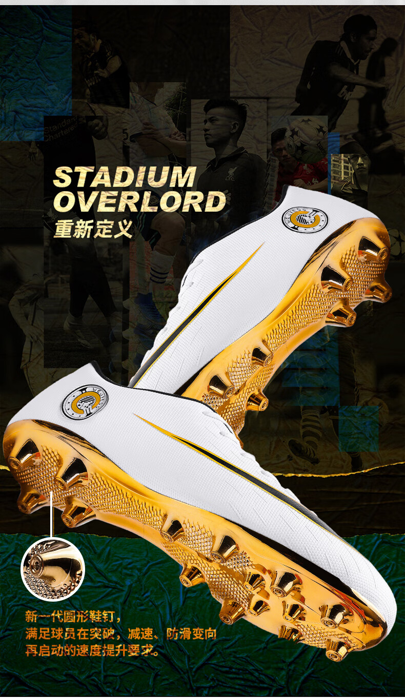 YUJIANG Dark Evil Cristiano Ronaldo Assassin 14 Football Shoes for Boys and Girls Training High Top Competition Adults 5 W8376 White/Gold Bottom Long Nails Electroplated Gold Bottom 40