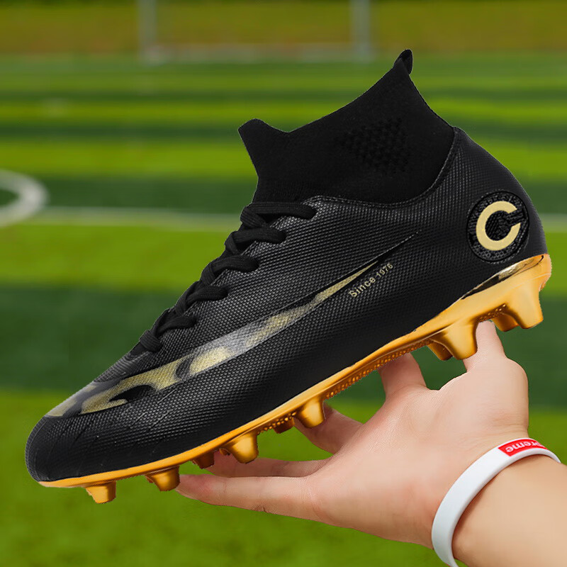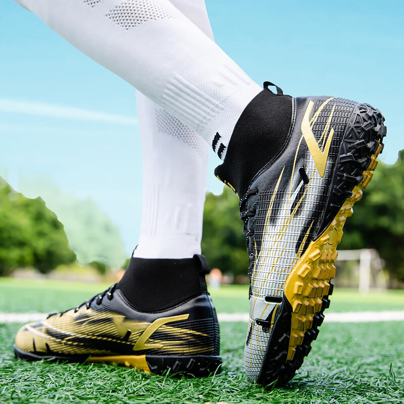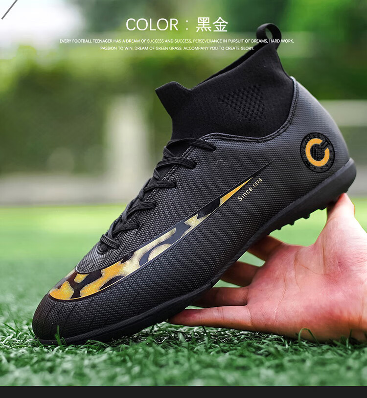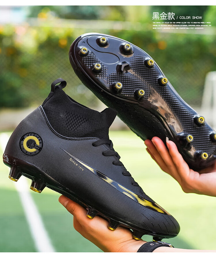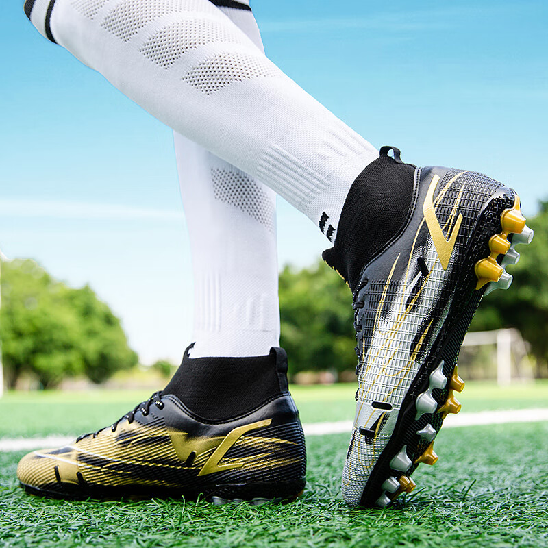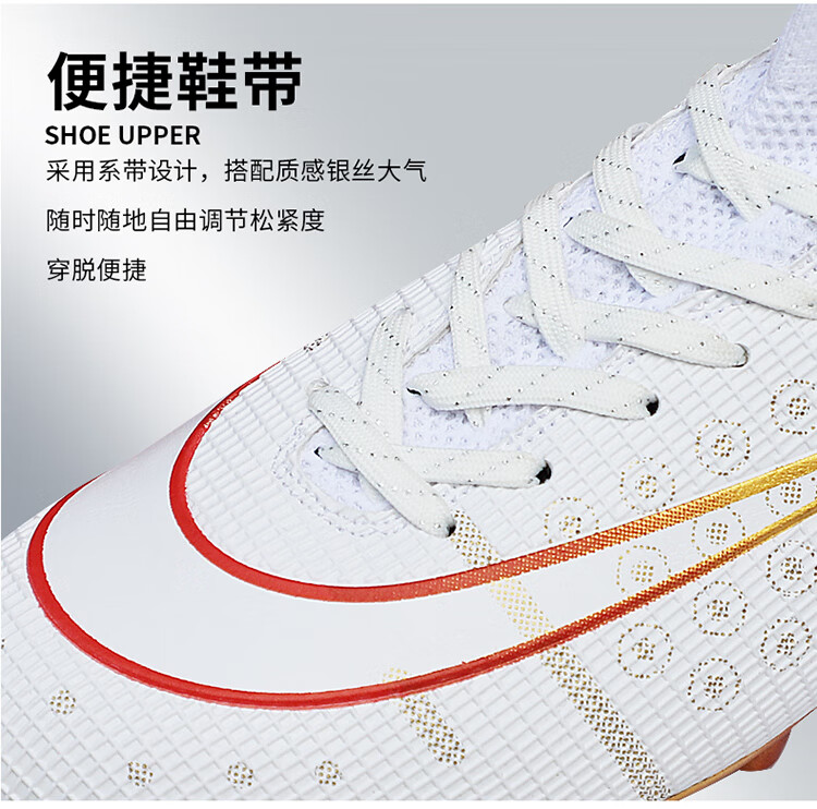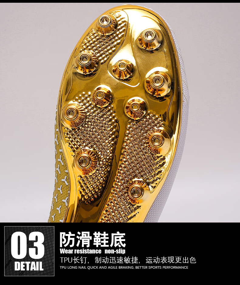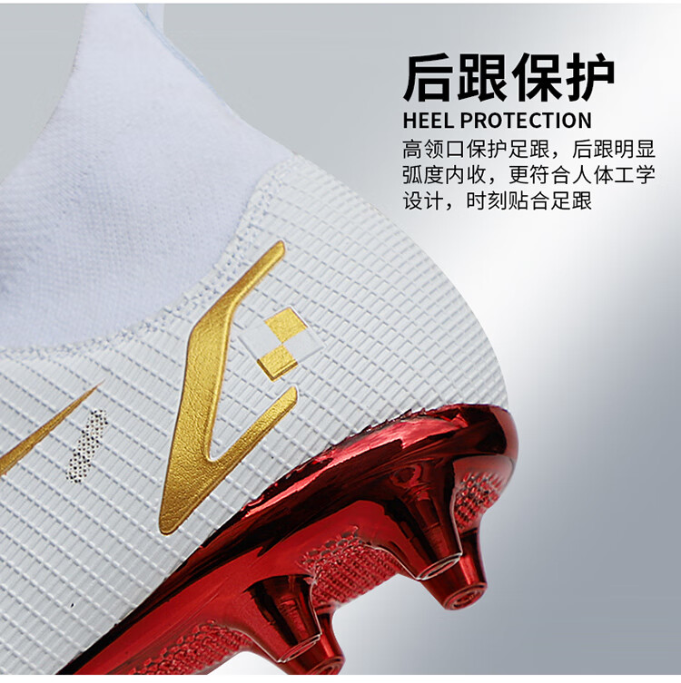YUJIANG Dark Evil Cristiano Ronaldo Assassin 14 Football Shoes for Boys and Girls Training High Top Competition Adults 5 W8376 White/Gold Bottom Long Nails Electroplated Gold Bottom 40
