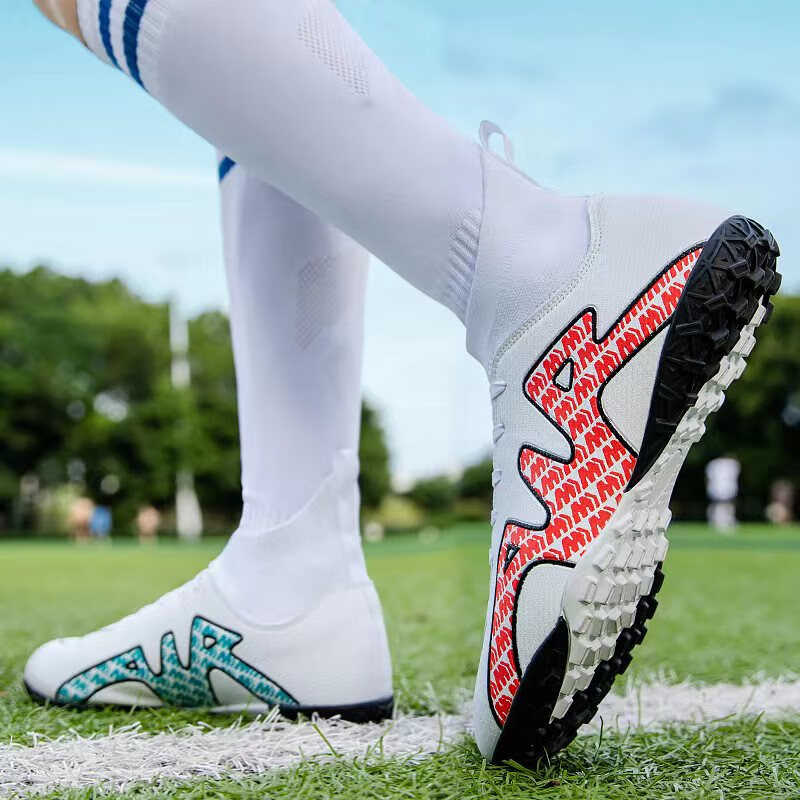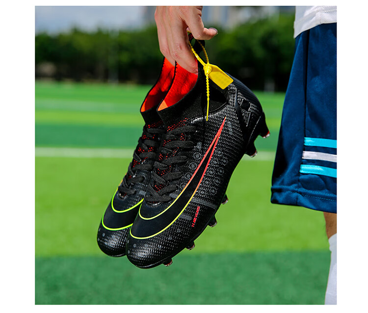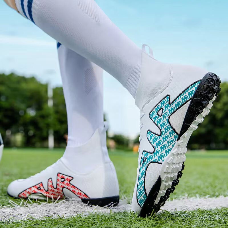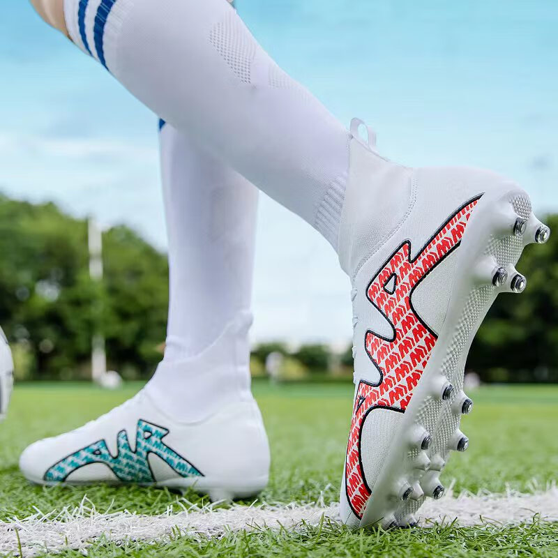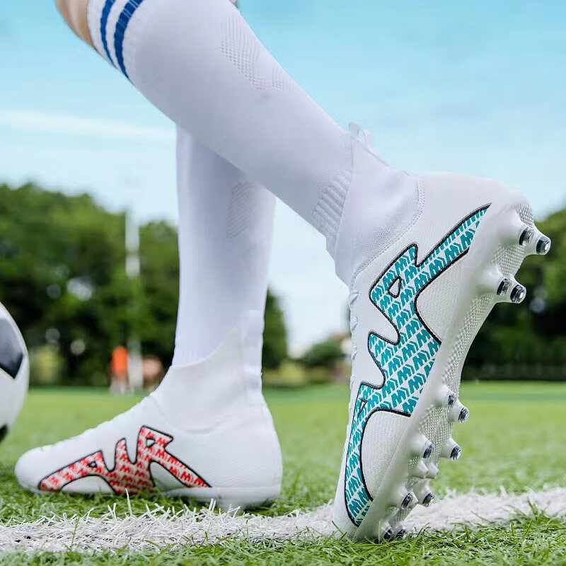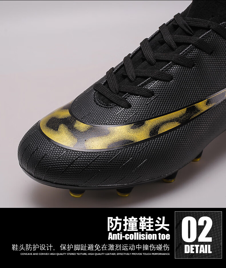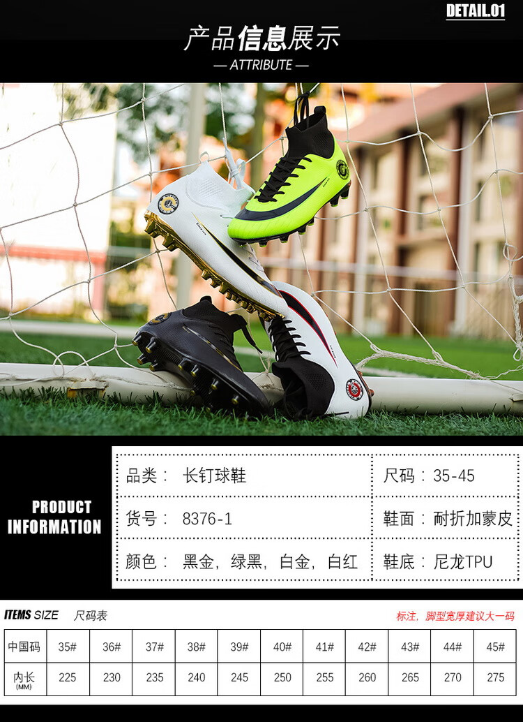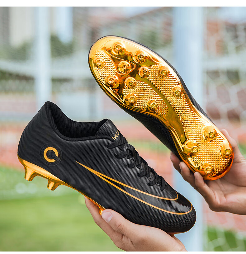 YUJIANG Dark Evil Cristiano Ronaldo Assassin 14 Football Shoes for Boys and Girls Training High Top Competition Adults 5 W8376 White/Gold Bottom Long Nails Electroplated Gold Bottom 40