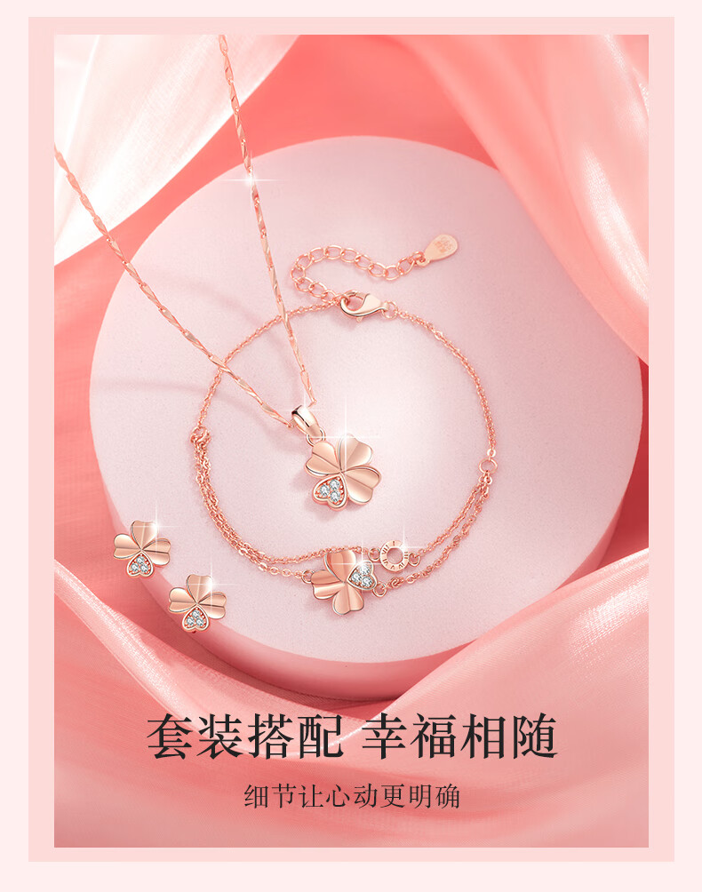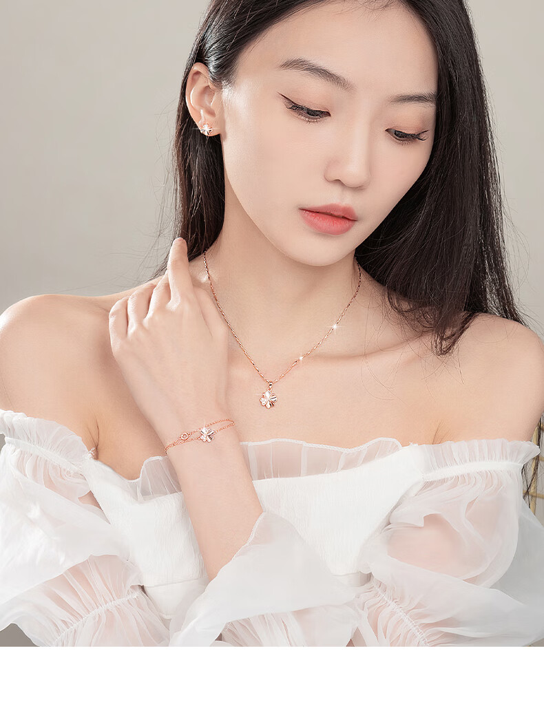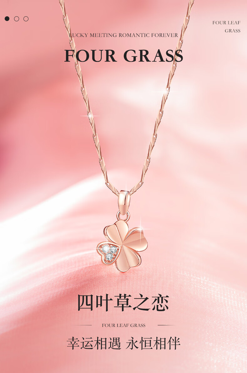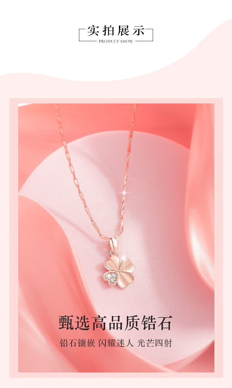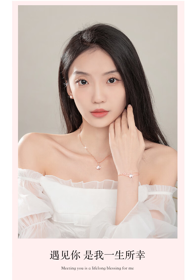 Ji Sifan Light Luxury Necklace Women's Four-leaf Clover High-End Niche Jewelry Valentine's Day Anniversary Birthday Gift for Girlfriend and Wife Lucky Encounter Four-leaf Clover Necklace Silver White