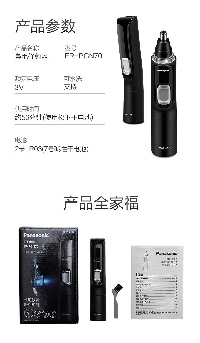 Panasonic Nose Hair Shaving Trimmer Full Body Washable Electric Eyebrow and Beard Styler ER-PGN70 ER-PGN70