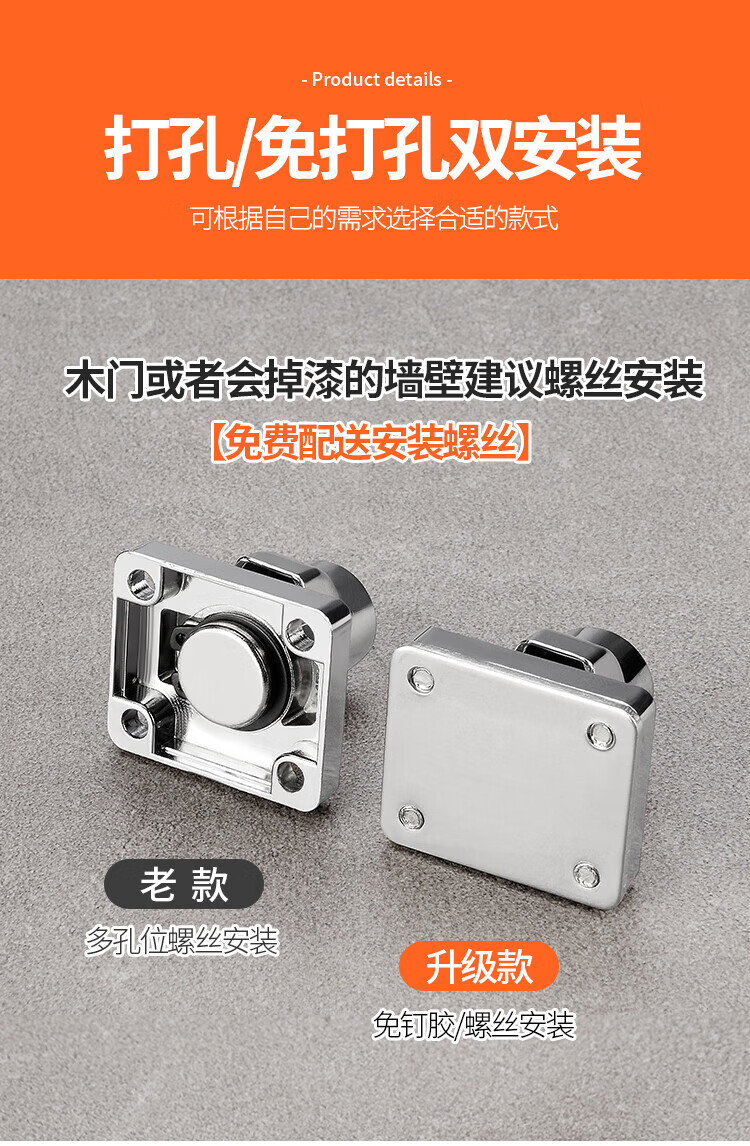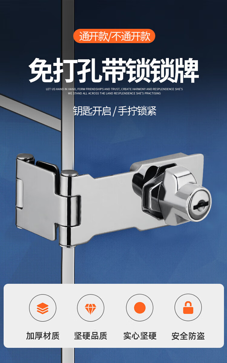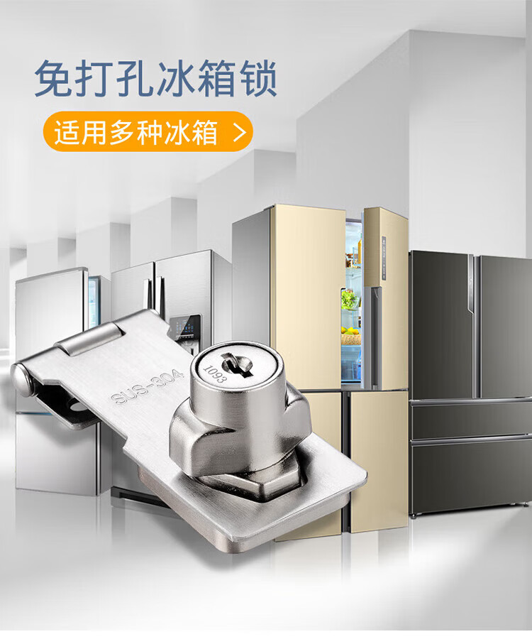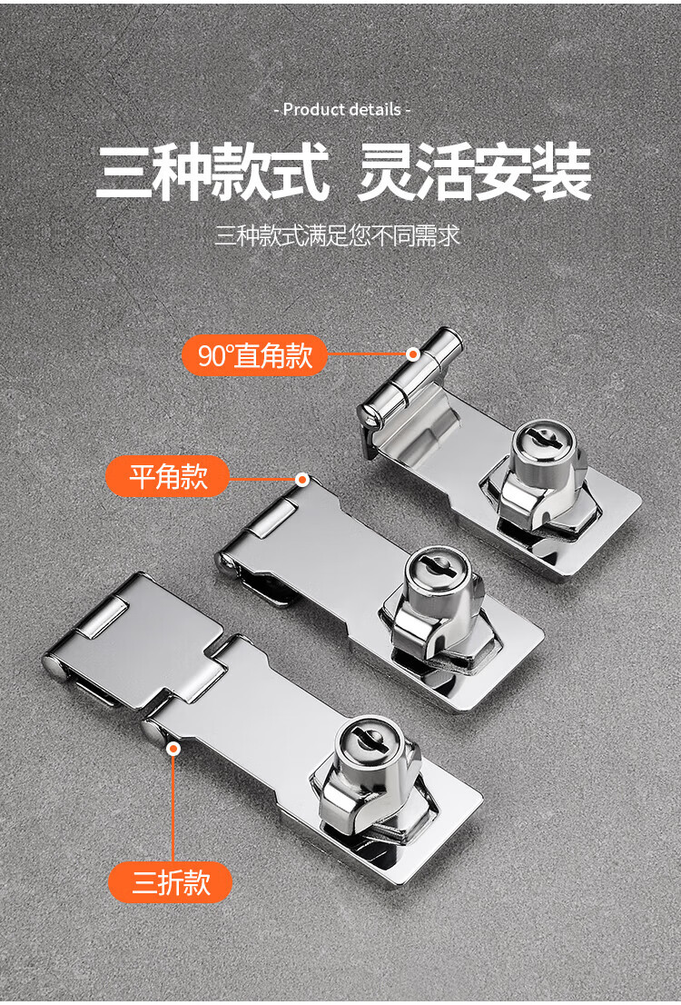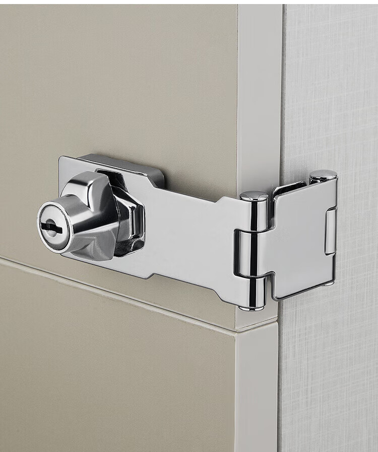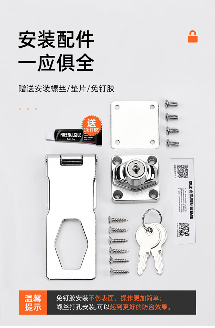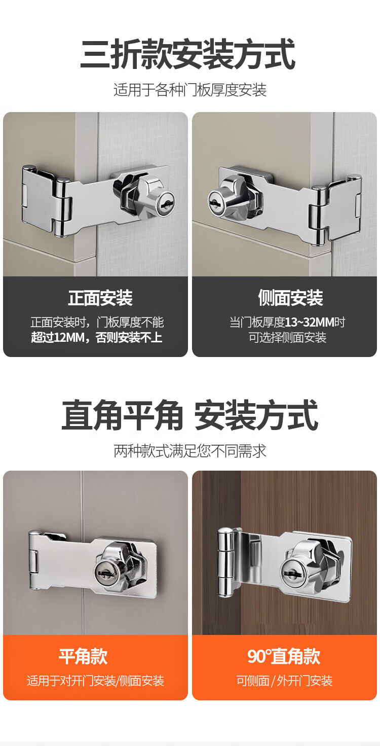 百蒂安抽屉锁冰箱锁免打孔锁扣柜子锁90度直角加厚保险栓搭扣锁牌柜门锁 三折亮光款(免钉2用) 通开