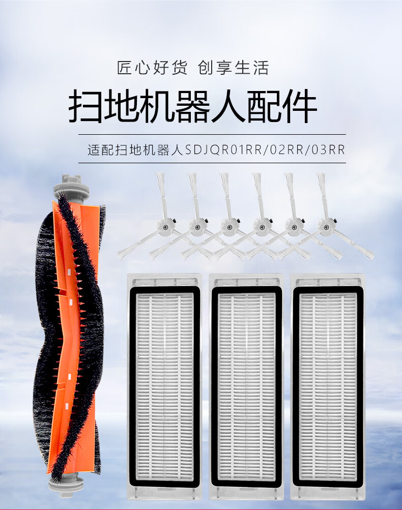 Jingxi is suitable for Xiaomi Mijia sweeper generation 1S accessories, all-purpose 2 side brushes, filter, dust box, dust bag, mop cleaning liquid, non-mopping model, side brushes, 2 filters, 2 main brushes, 1+ tools
