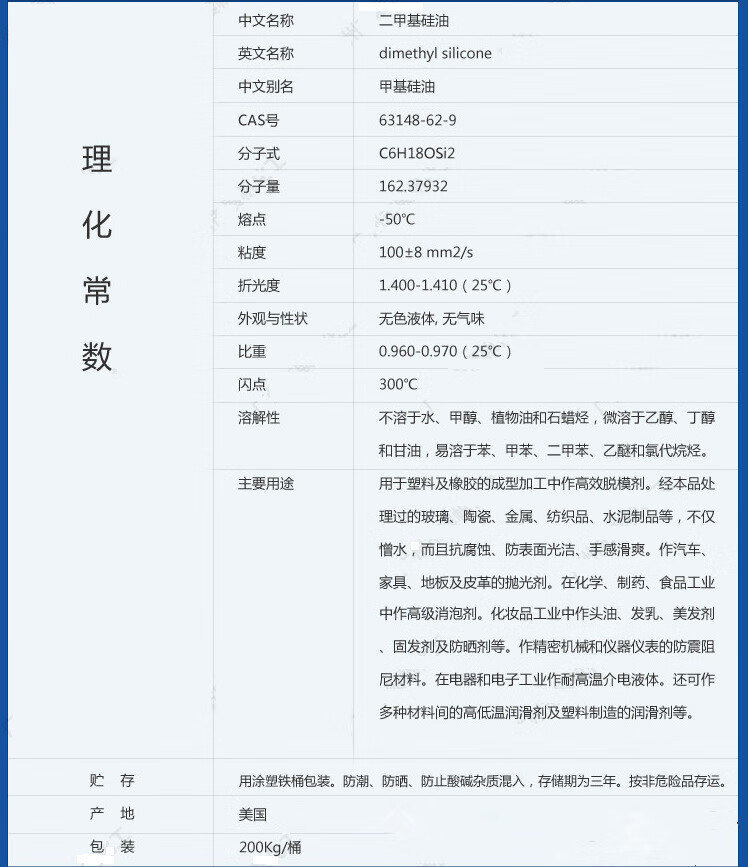 Imported silicone oil, dimethyl silicone oil, high temperature oil bath, release agent, mechanical lubrication and maintenance oil 1kg, Dow Corning 1 liter (10CS)