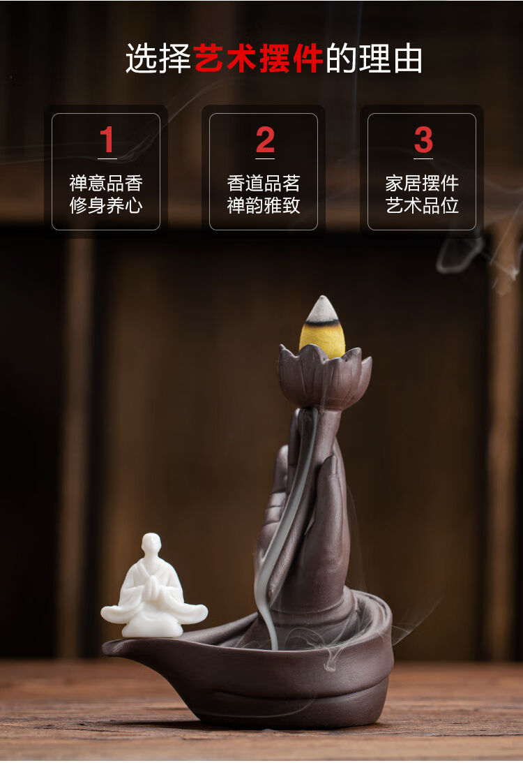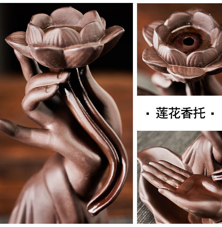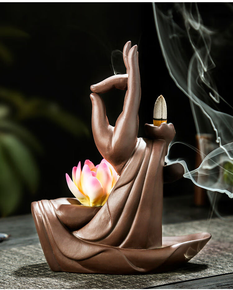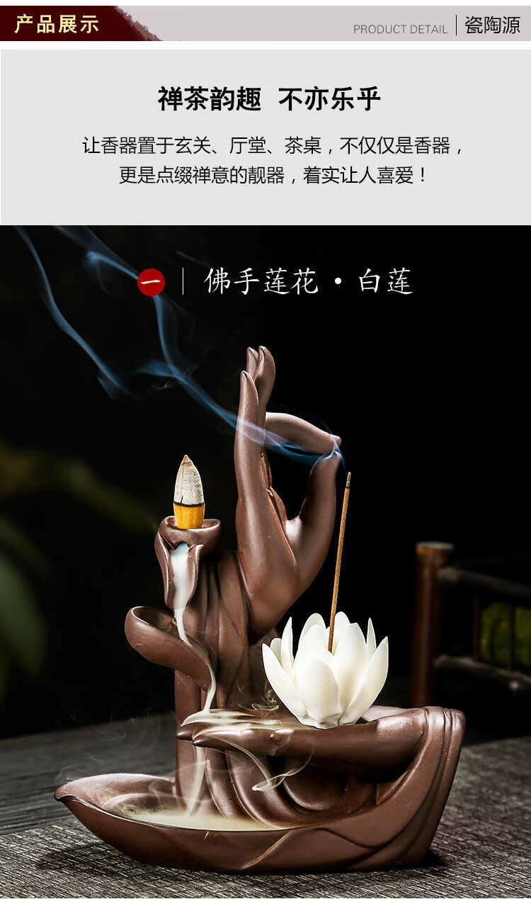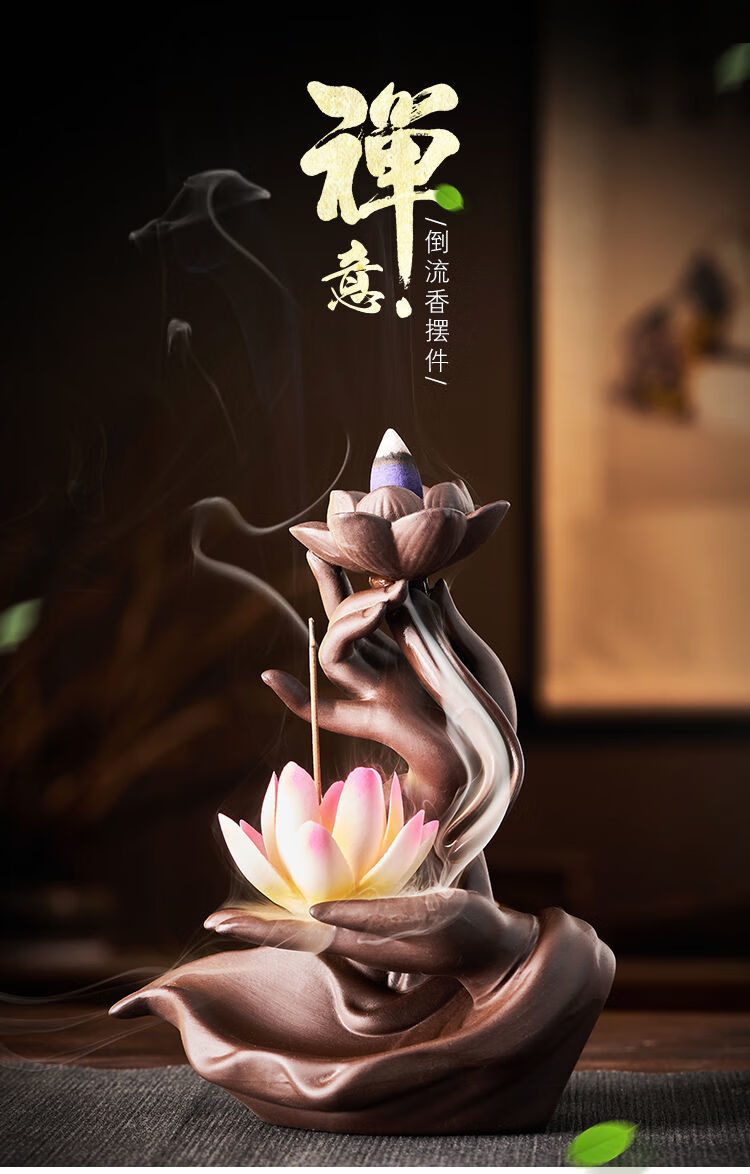 Jimang (JIMANG) reverse flow incense burner, creative ornaments, home indoor incense burner, sandalwood burner, incense stick, agarwood incense holder, gift to friends, bergamot lotus heart, pink lotus