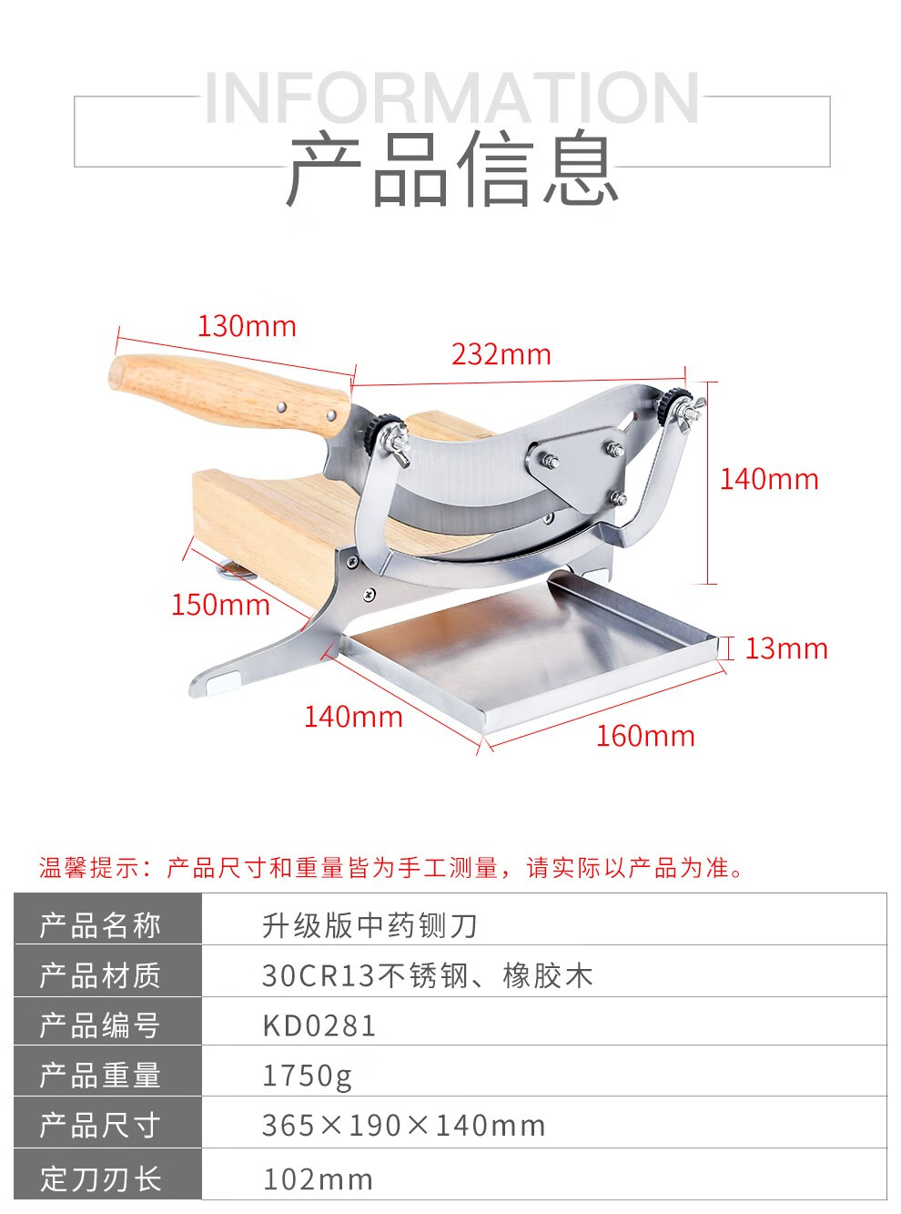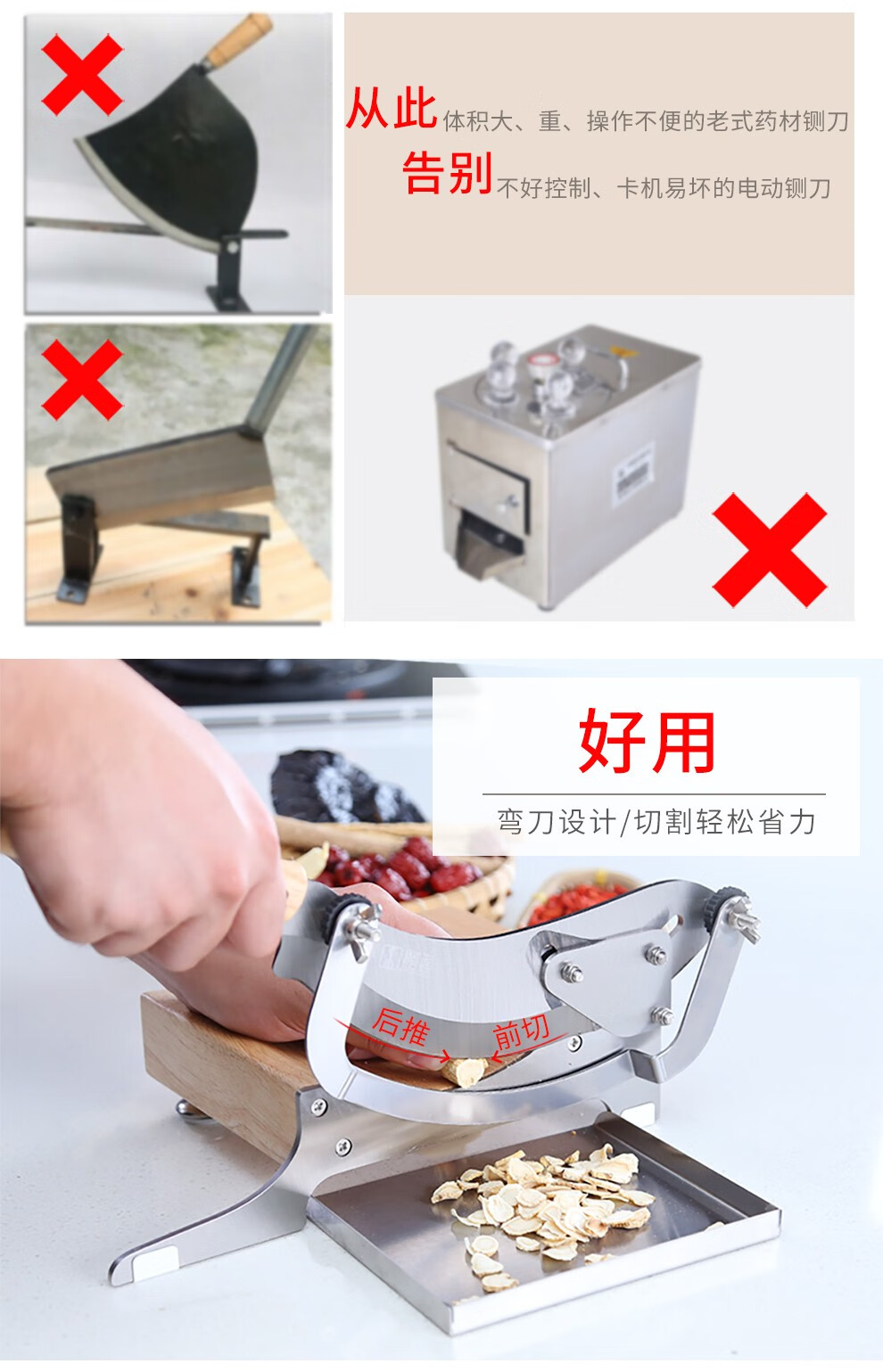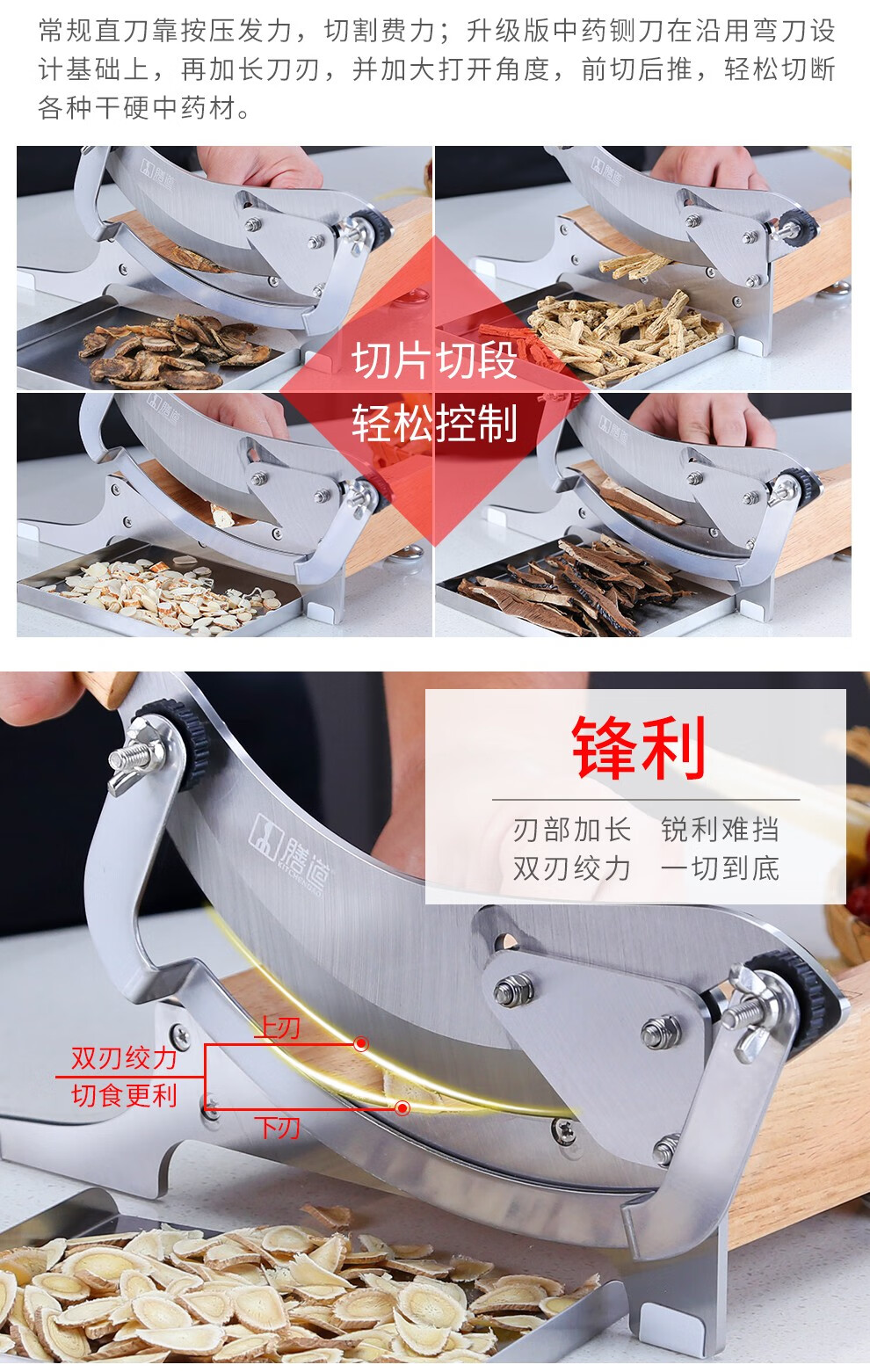 Shandao Chinese medicine slicer, household commercial medicinal material guillotine, stainless steel knife for cutting ginseng, Ganoderma lucidum and deer antler slices, Chinese medicinal material guillotine-upgraded bezel style