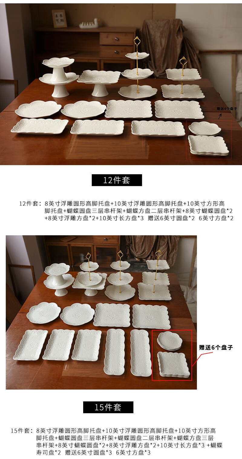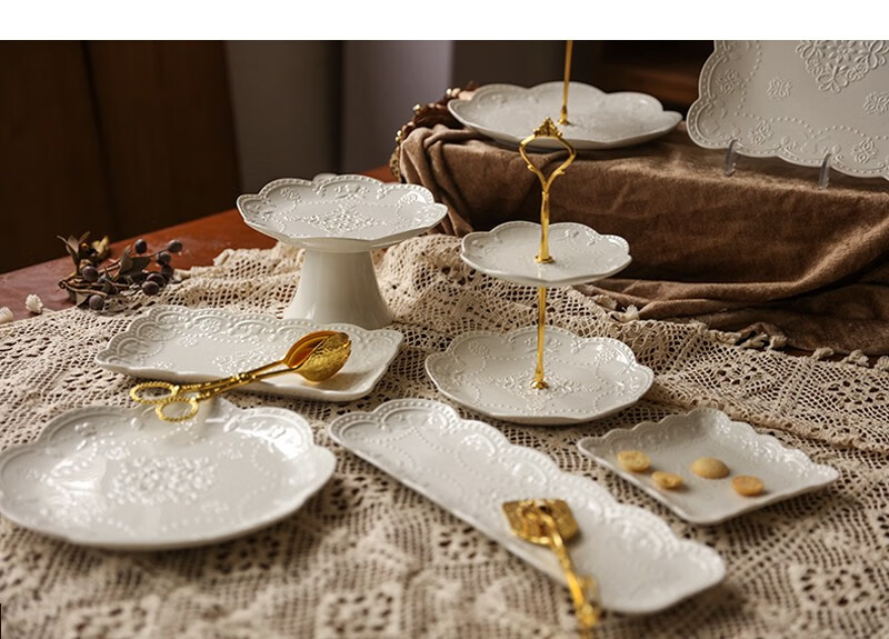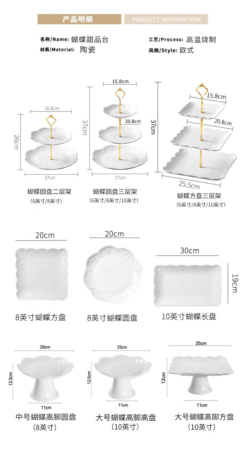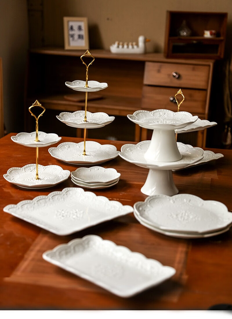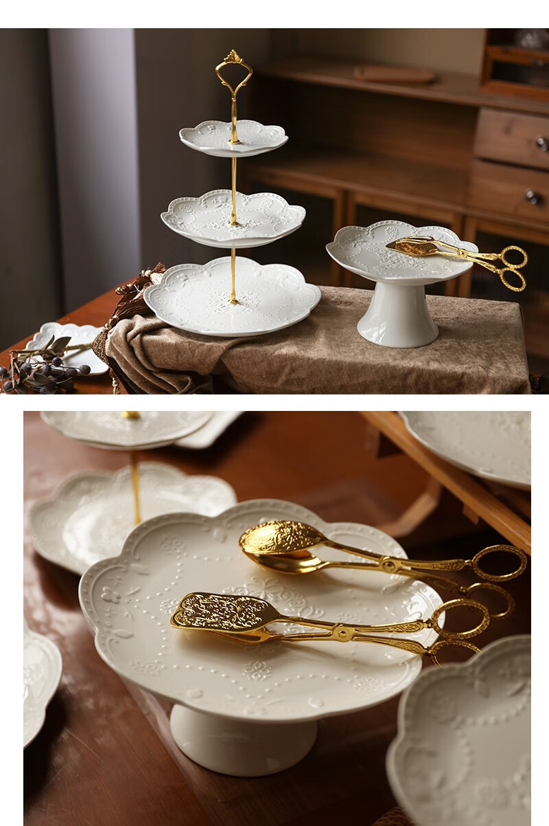 Jiayi Kitchen Decorative Dessert Table Display Rack Ornaments European Cold Dinner Tea Break Table Cake Dessert Tray Afternoon Tea Snack Rack Three-piece Set
