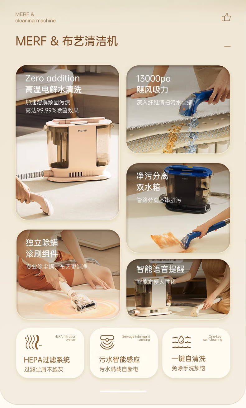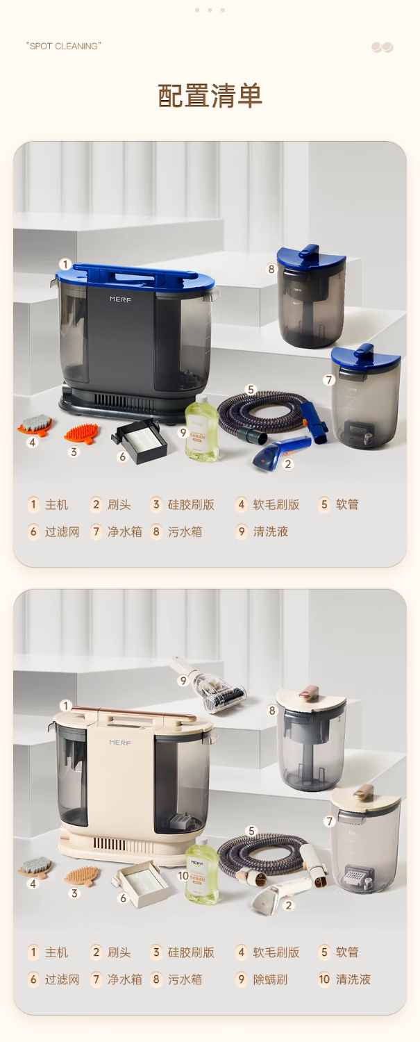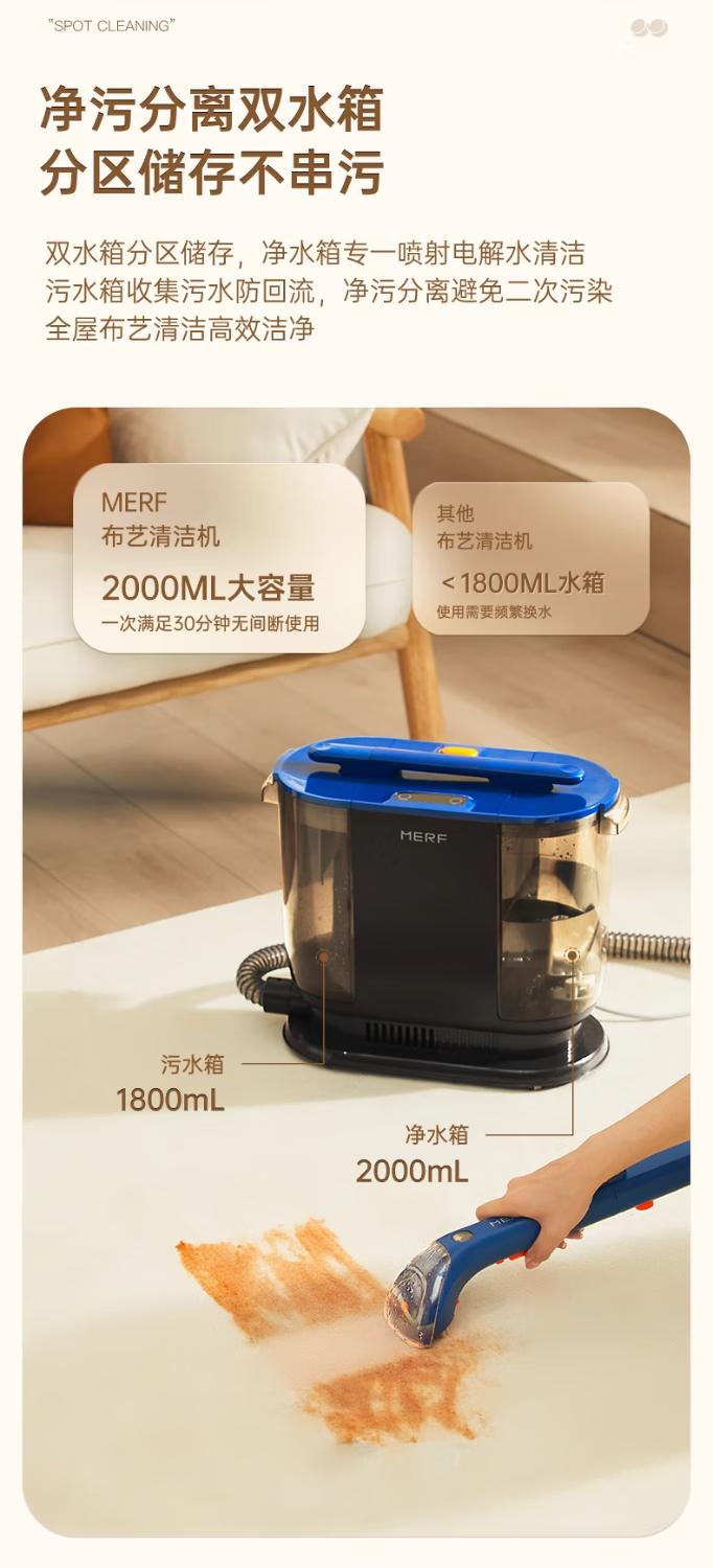Merf household fabric cleaning machine, floor scrubber, mite removal vacuum cleaner, spray and suction integrated sofa, carpet, blanket, doll, curtain, mattress, multi-functional cleaning machine artifact, basic model, double water tank