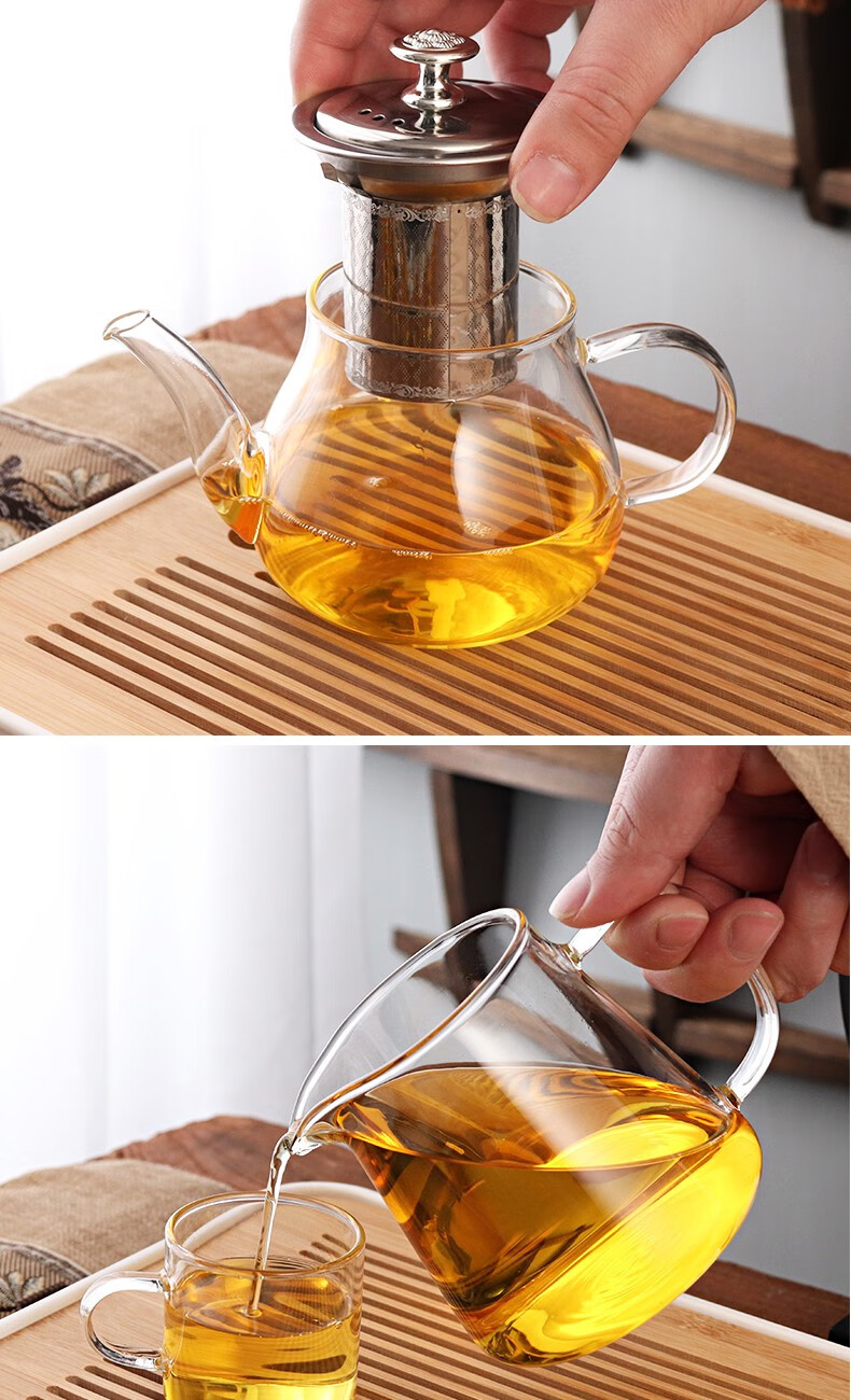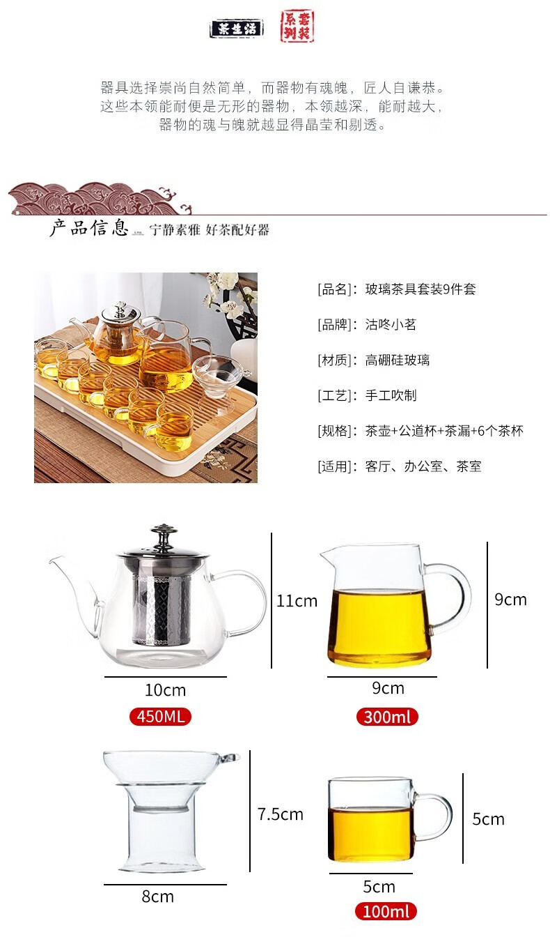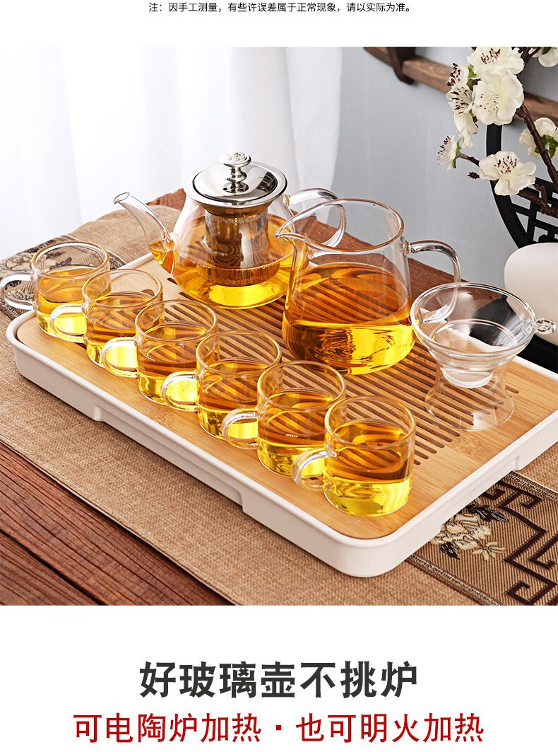 Daixi glass tea set household heat-resistant complete Kung Fu tea set teacup teapot fair cup tea drain set Bajun pot nine-piece set 450ML teapot