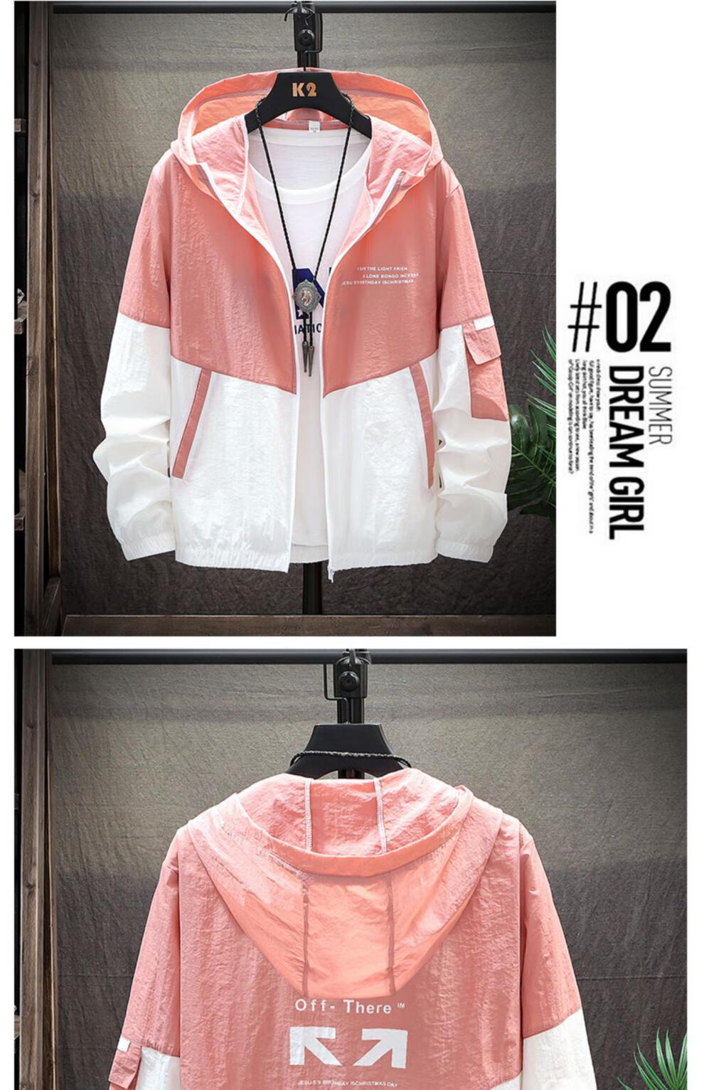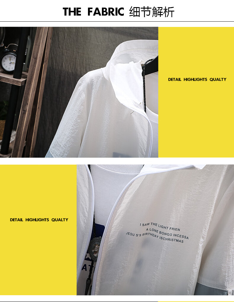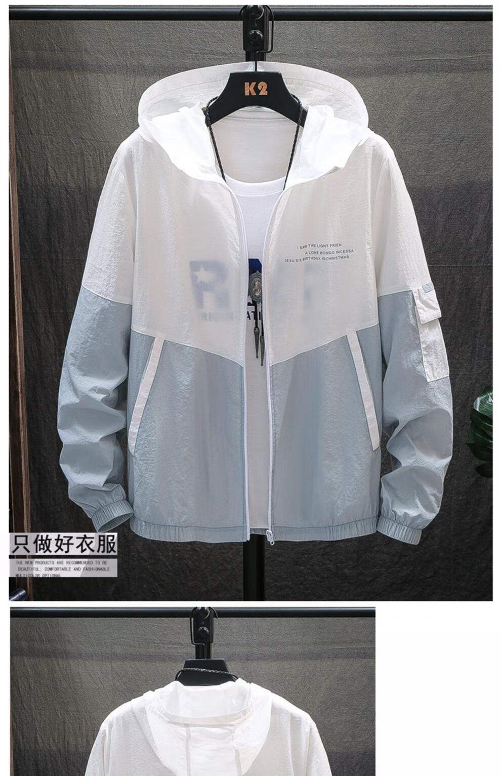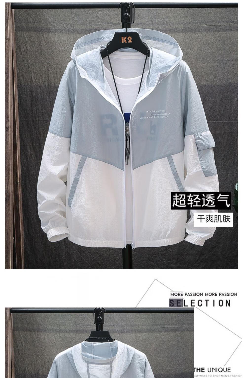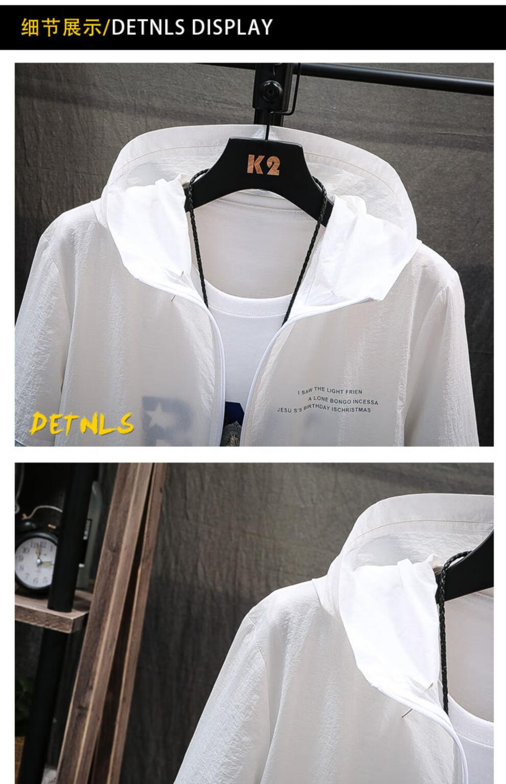 ADHCUCK Ice Silk Sun Protection Clothes Men's Summer Thin Breathable Hooded Fishing Cycling Casual Outdoor Quick-Drying Jacket 501 Upper White and Lower Gray M (80-90Jin Jin equals 0.5kg)