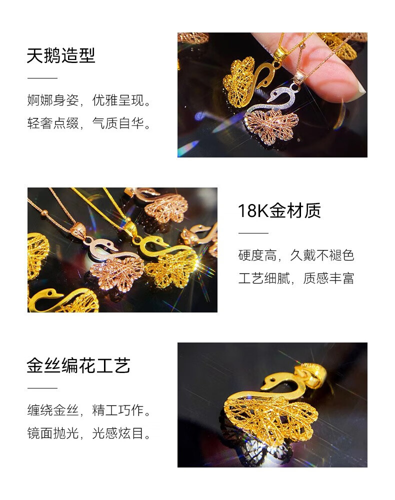 YISEILA 18k gold pendant women's swan pendant gold rose gold K gold pendant elegant pendant 18k gold swan pendant (approximately 1-1.1 grams)