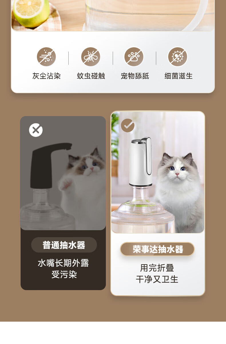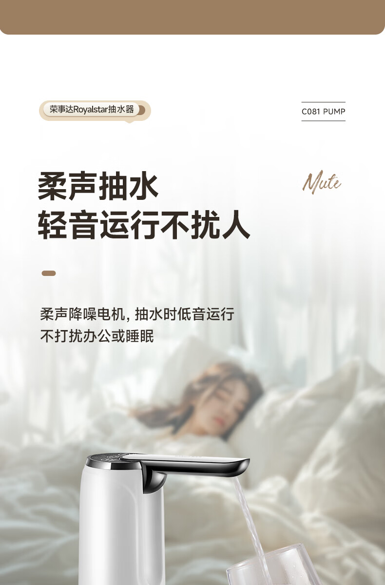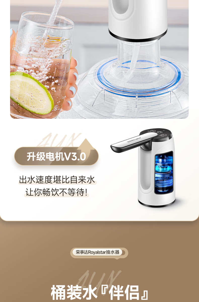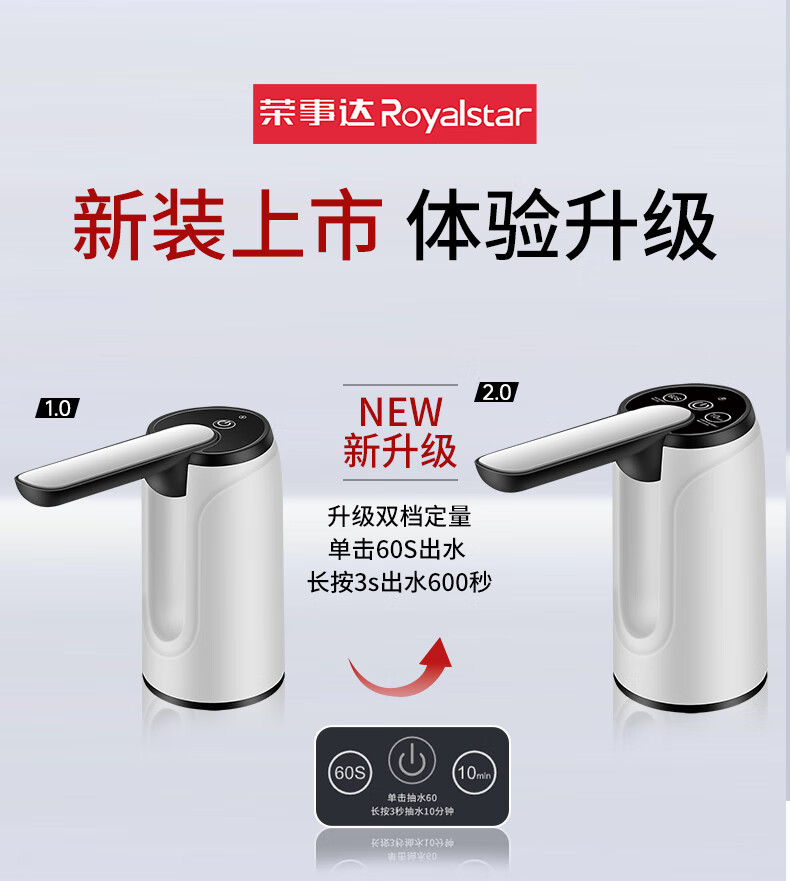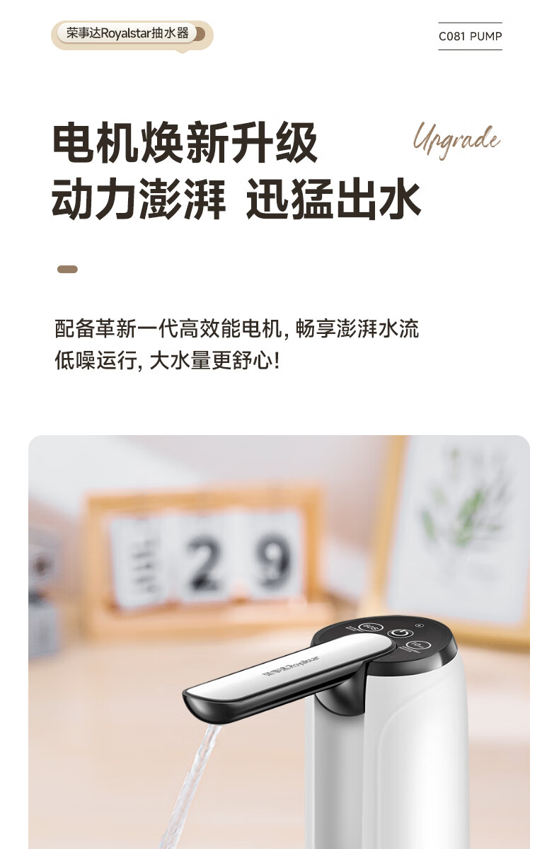 Royalstar bottled water pump, electric water dispenser, water dispenser, pure bucket water dispenser, automatic water pressurizer, water absorber, new double gear, foldable, anti-bacterial + fast water outlet, universal