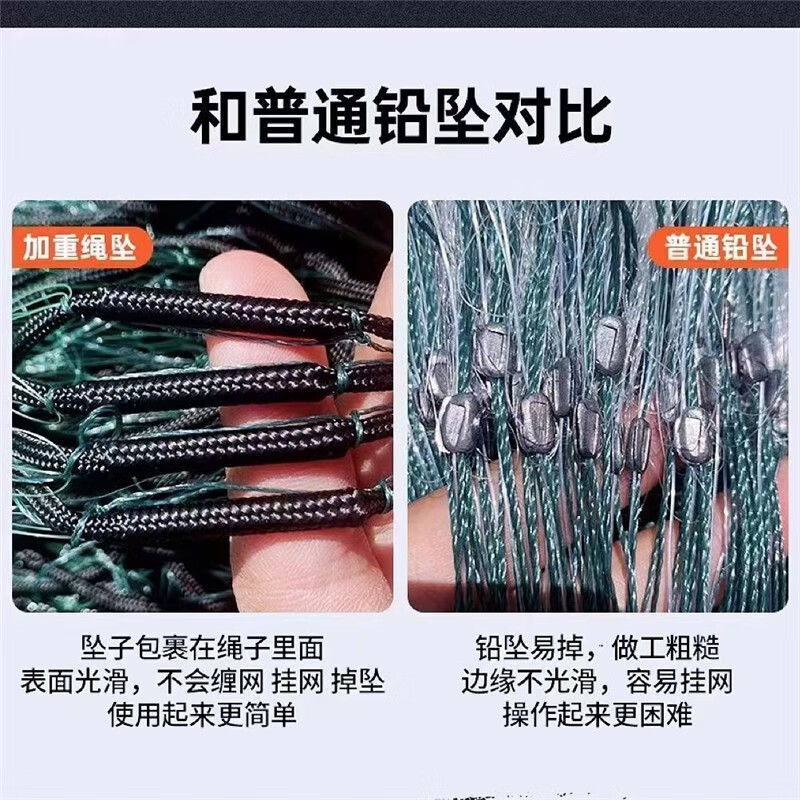 Rope-wrapped fishing net imported green silk three-layer sinking net 100 meters weighted sinking net unwrapped net hanging mesh wire mesh fishing net 1.5 meters high 3 fingers 100 meters weighted three-layer sinking net
