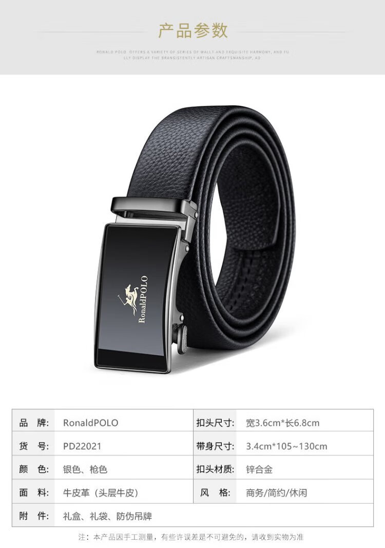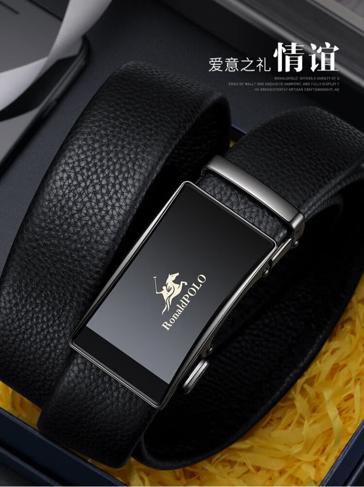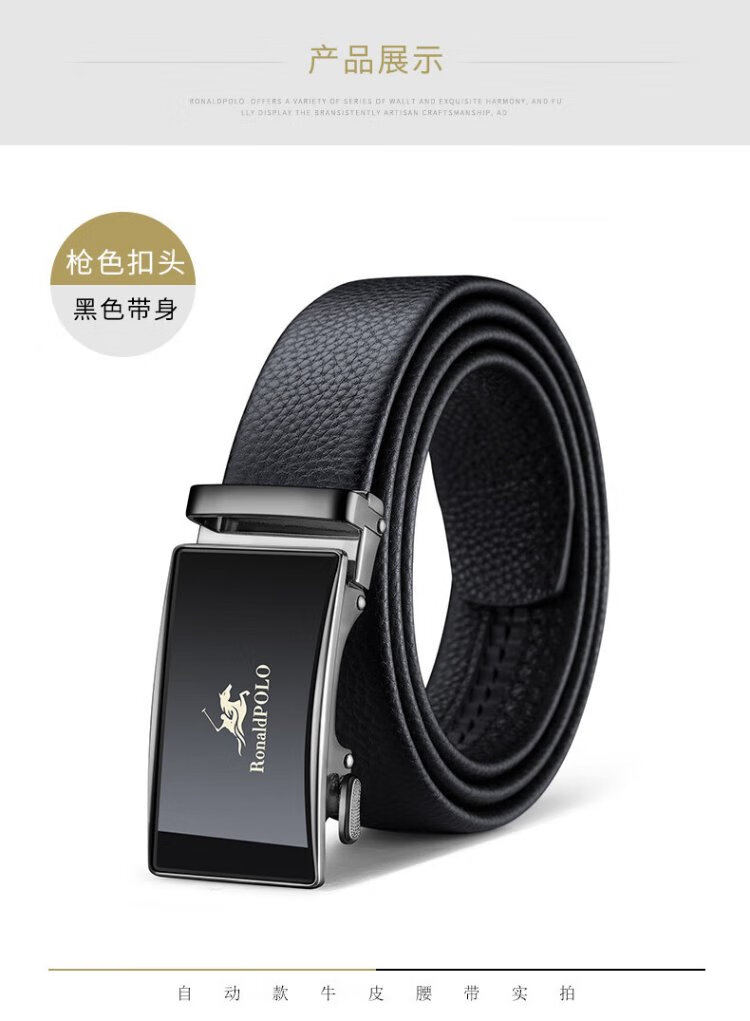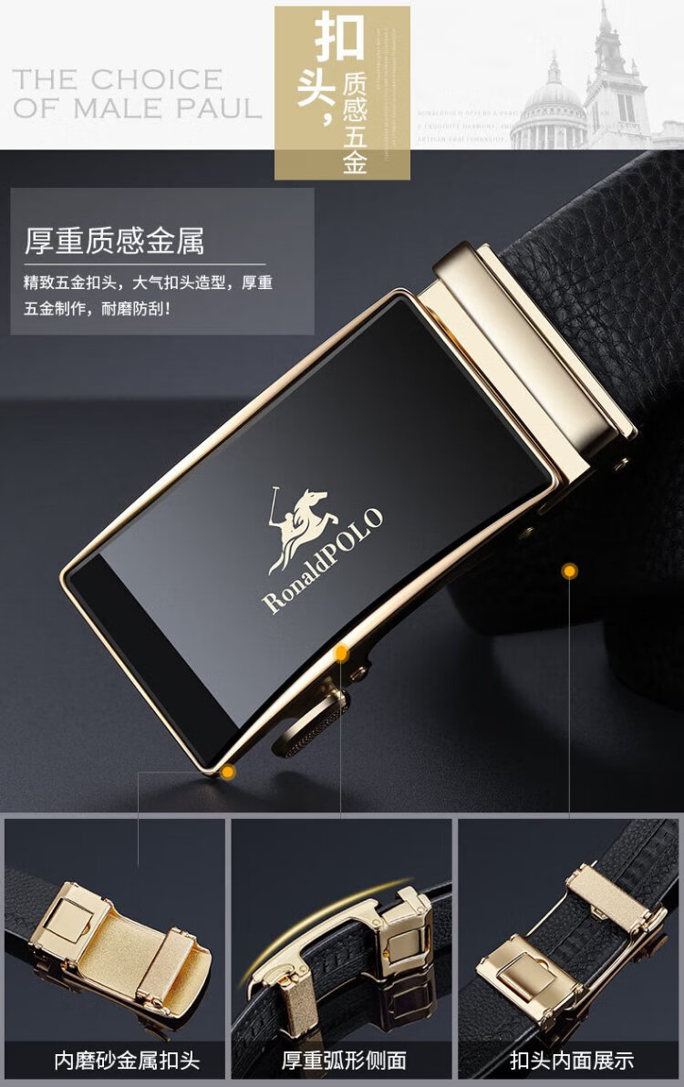 Boston Paul belt men's top ten genuine leather automatic buckle belt high-end brand trouser belt pure cowhide birthday gift for boyfriend gun color first layer cowhide 125cm