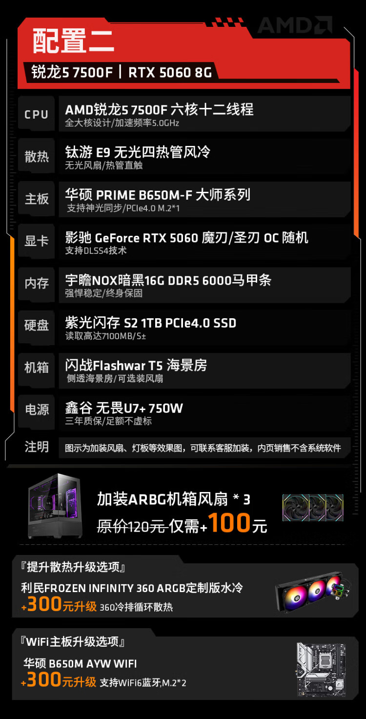 AMD Ryzen R5 7500F/RTX5060Ti/RX9060XT assembly computer host Black Myth Wukong e-sports game computer host desktop complete machine diy assembly machine Configuration 2 R5 7500F+RTX5060 8G