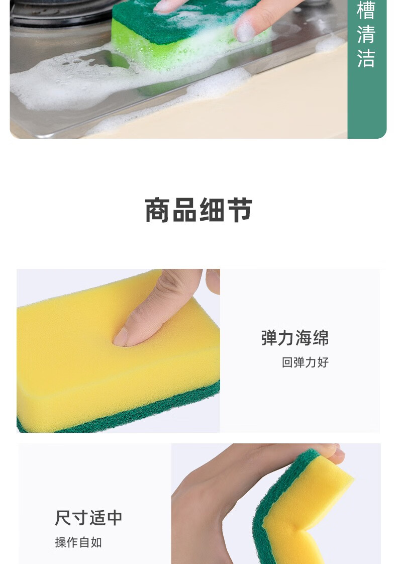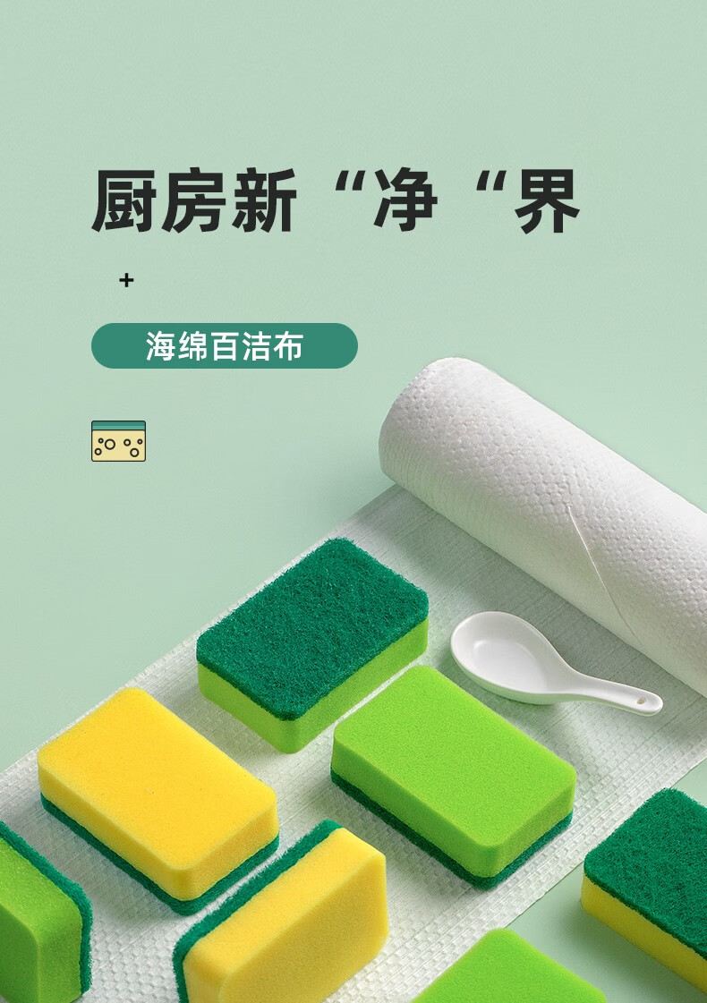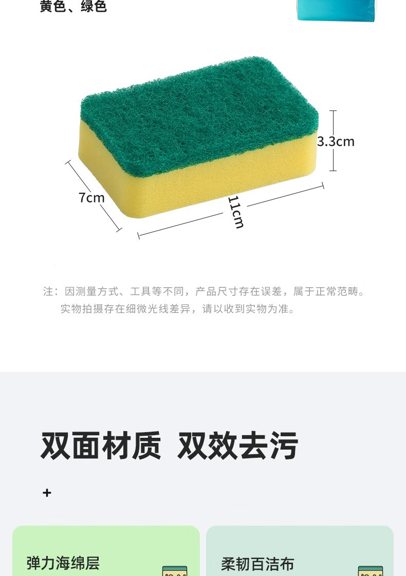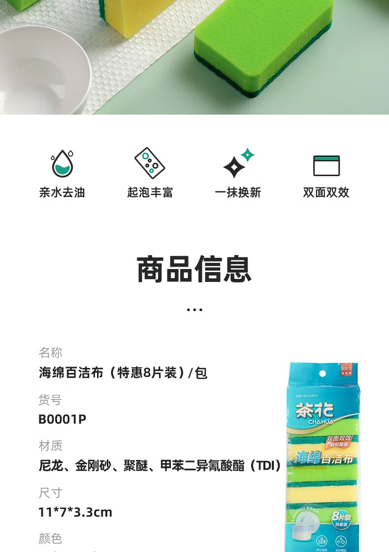 Camellia sponge scouring pads, dishwashing rags, 8 pieces, double-sided, can be used to wipe kitchen pots, household sponges, scouring pads, 8 pieces