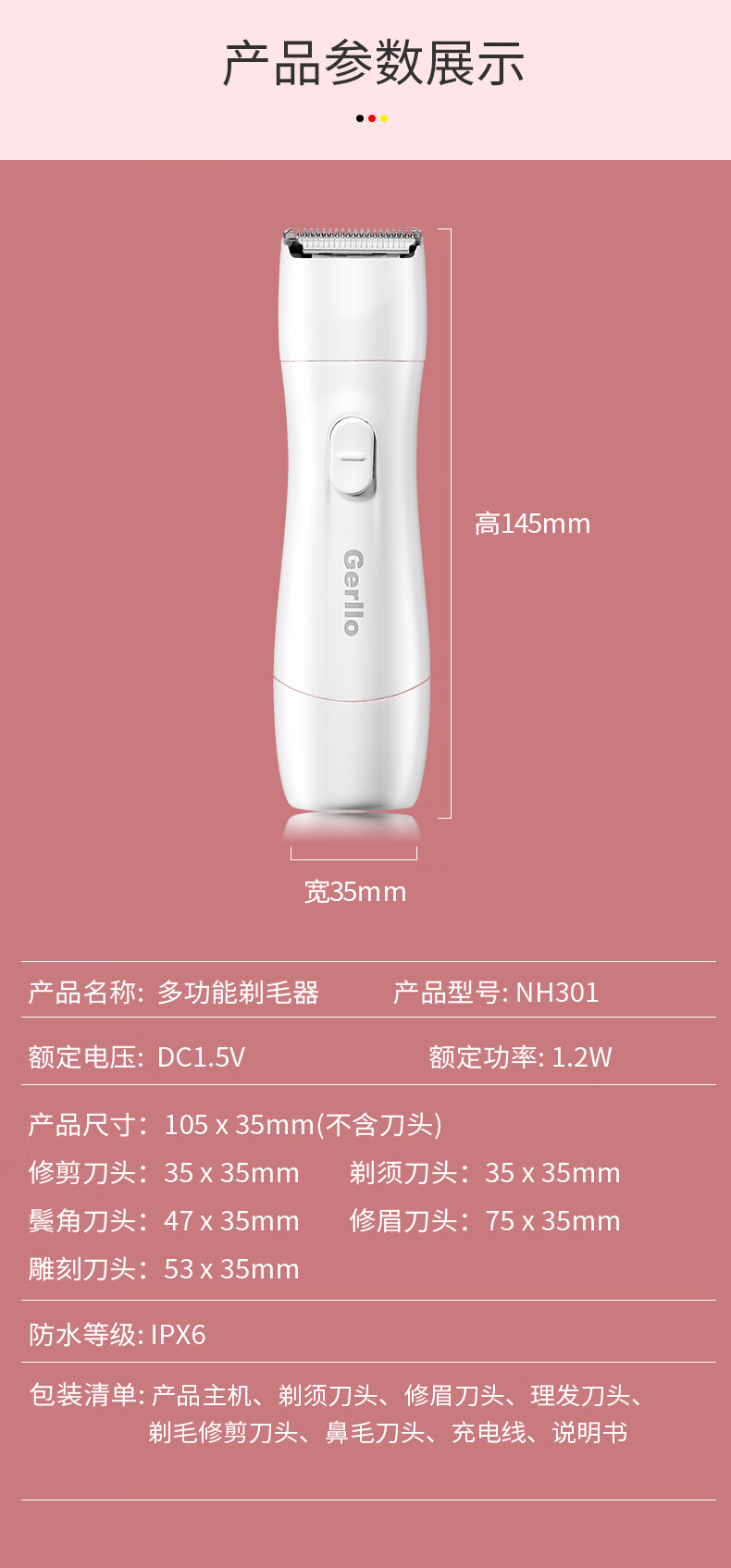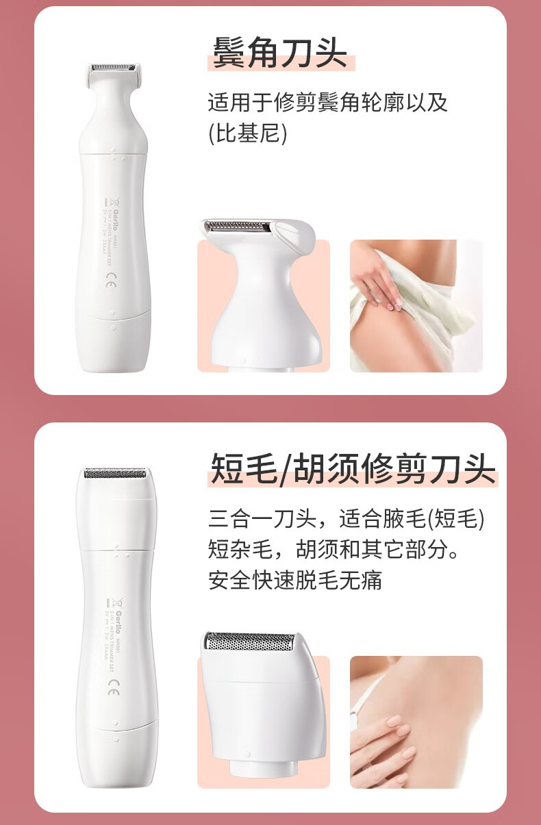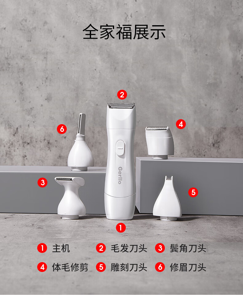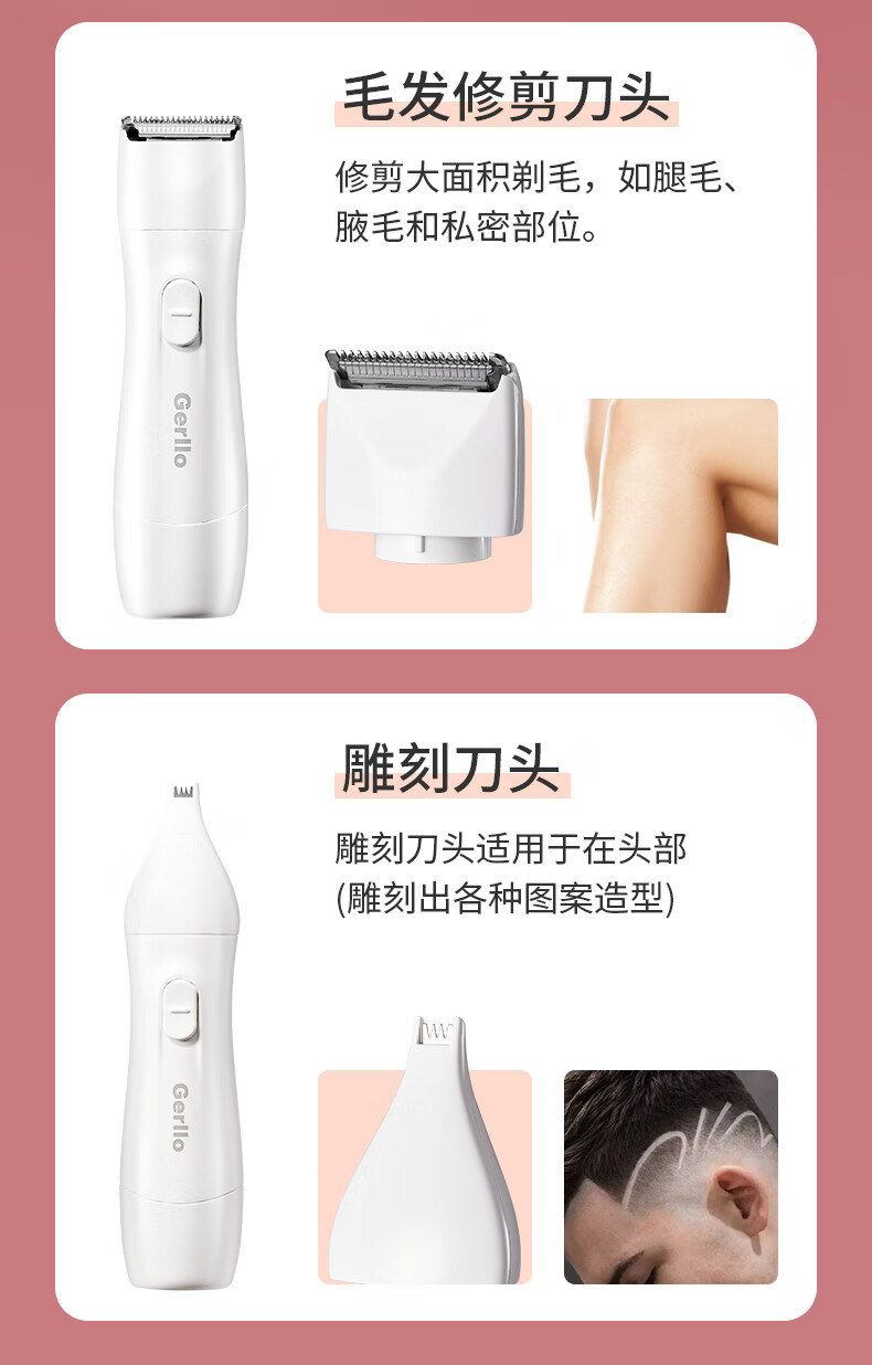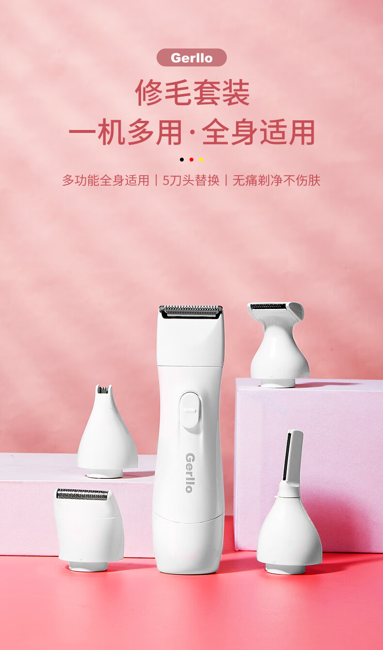 Gerllo German shaver private part hair removal instrument vaginal shaver women's private shaver body hair trimmer men's New Year gift elegant white multifunctional 5-in-1 blade can be used all over the body