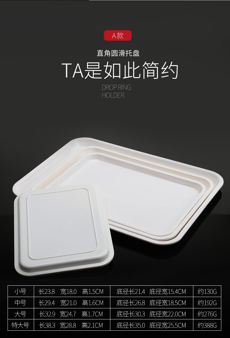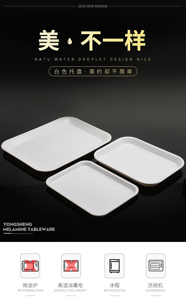 Yimeihuangting melamine tray white dinner plate plastic plate imitation porcelain guest room rectangular plate serving plate bread plate cake snack white large tray