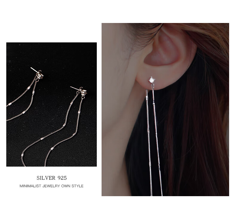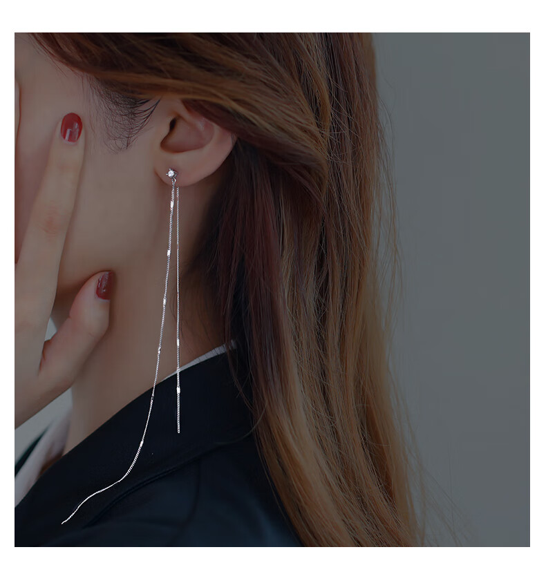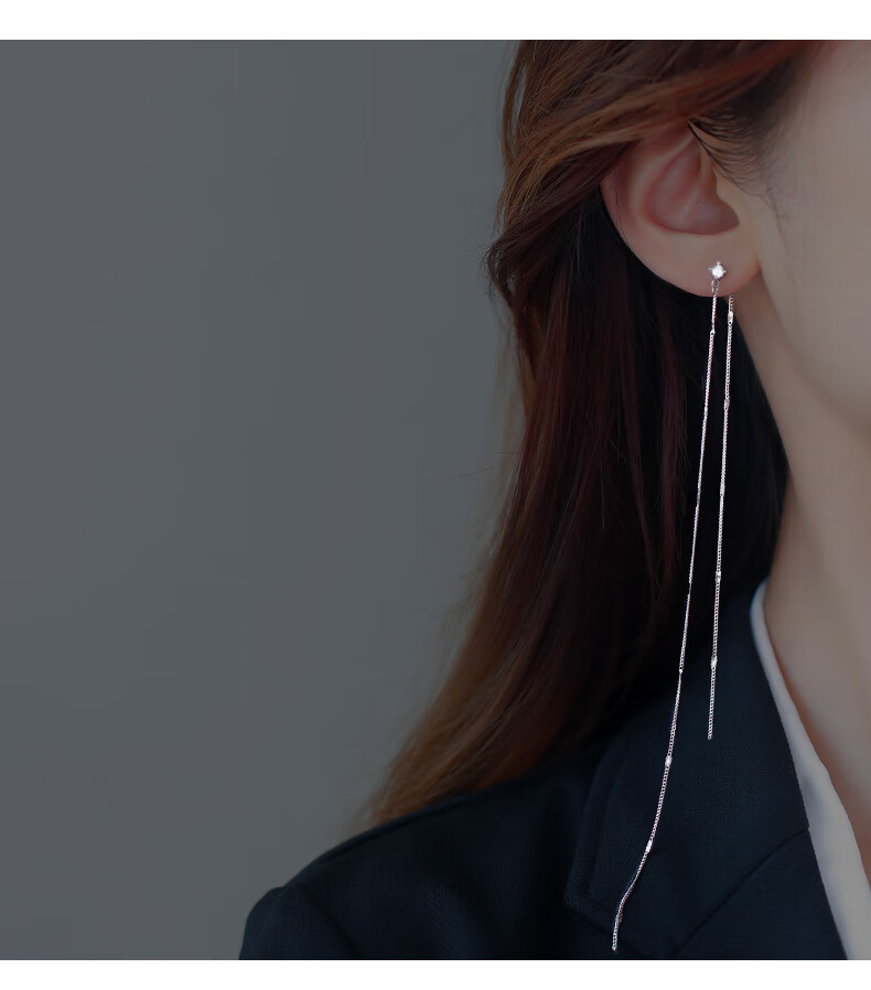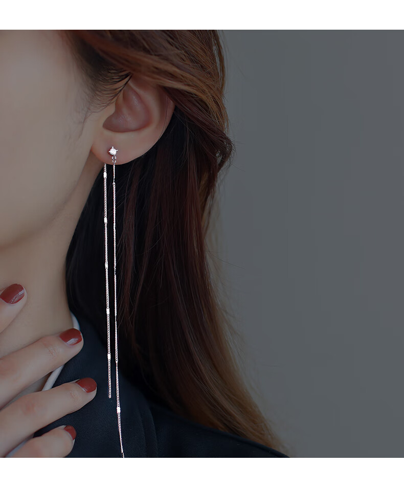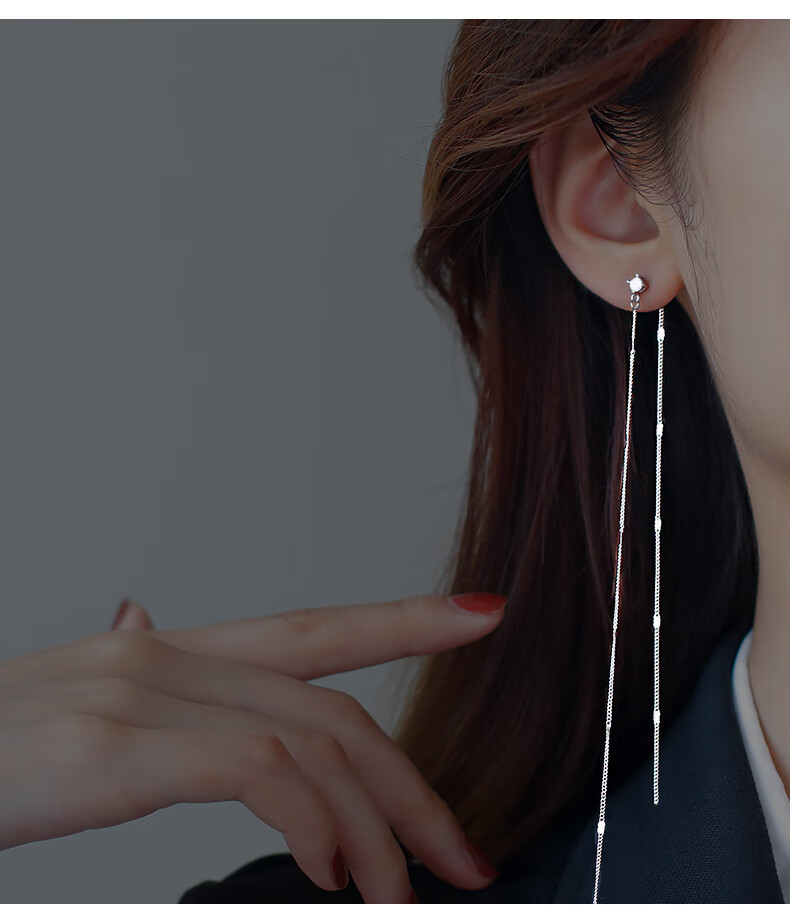 Yinao (yinao) 925 sterling silver ear wire women's summer style tassel fairy super long earrings female forest style super fairy niche design earrings long ear chain