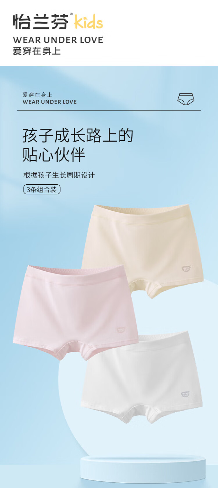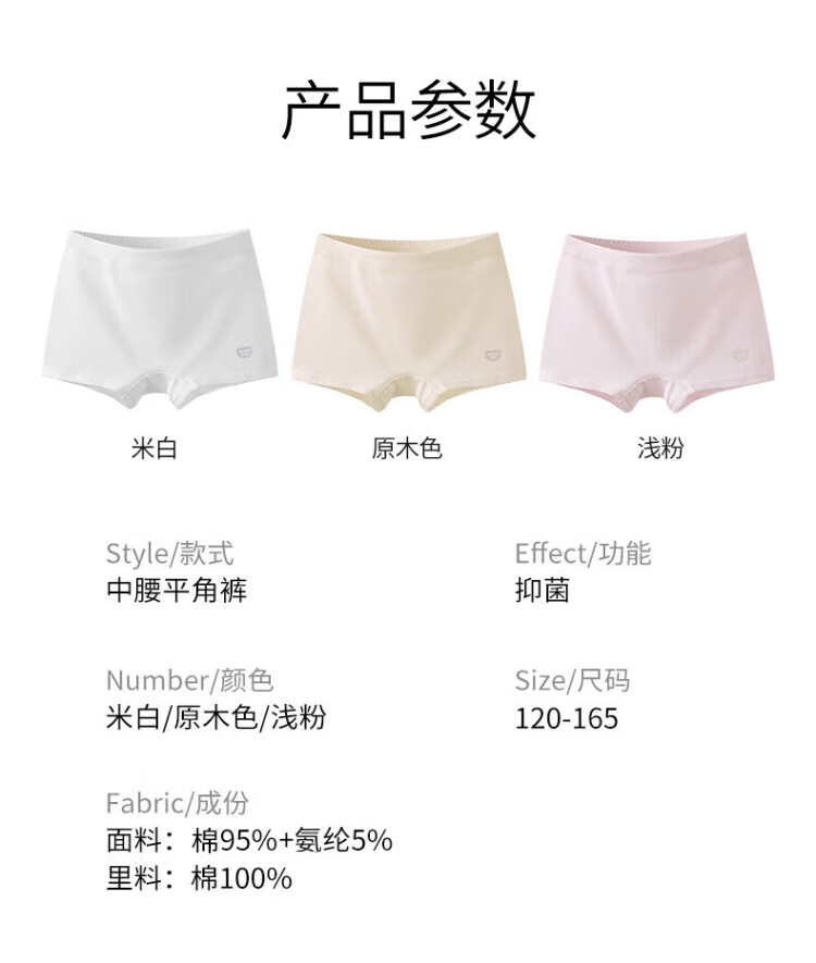 Yilanfen children's underwear girls' boxer briefs pure cotton antibacterial boxer shorts for older children, girls and teenagers boxer briefs off-white + wood color + light purple 3 pairs 165 (reference weight 110-130Jin Jin is equal to 0.5 kg)