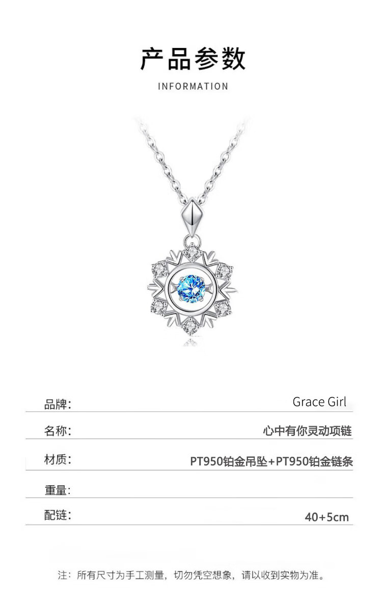 Grace Girl Platinum Beating Heart Necklace Women's Fashion Design Pt950 Pendant 520 Birthday Gift for Girlfriend and Best Friend Platinum Pendant + Platinum Chain Light Luxury Gift Box