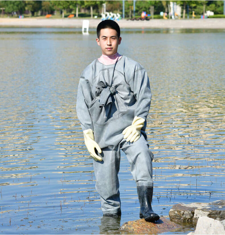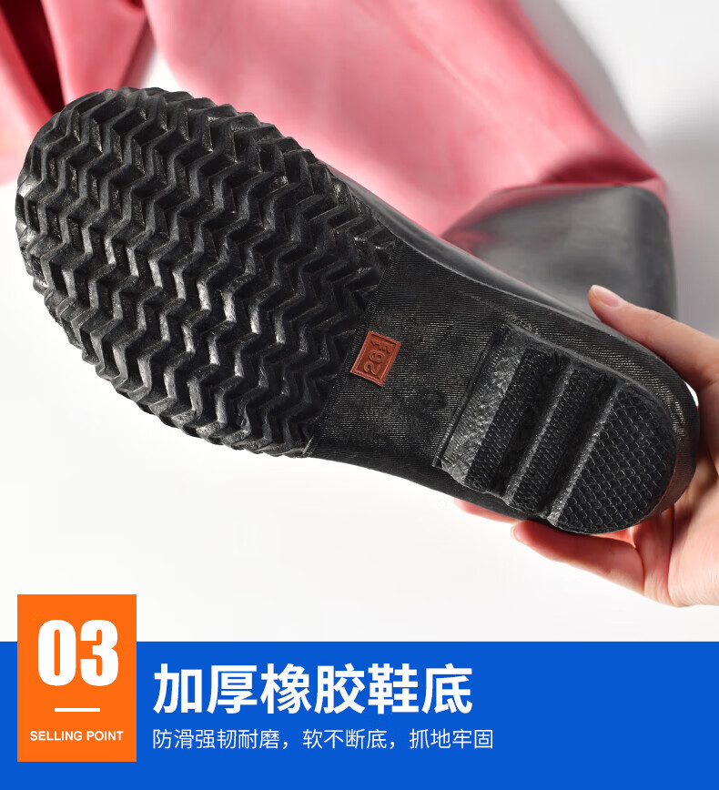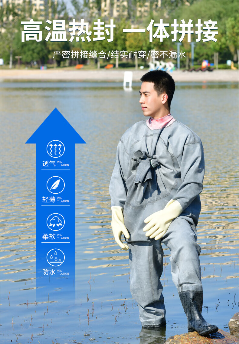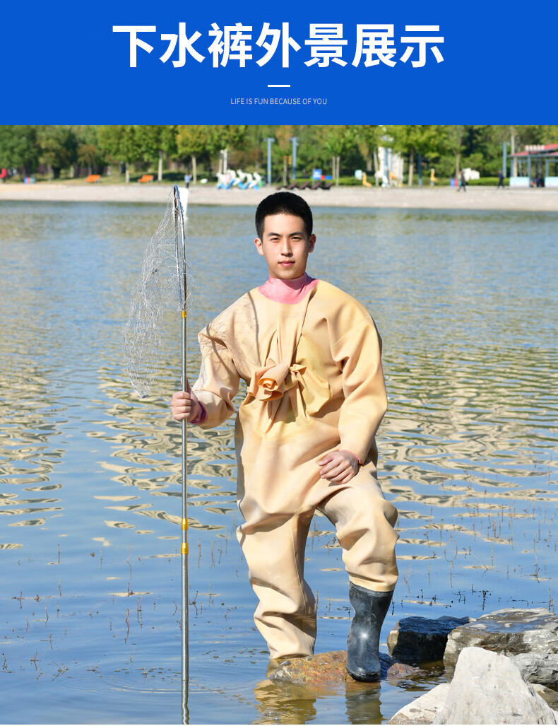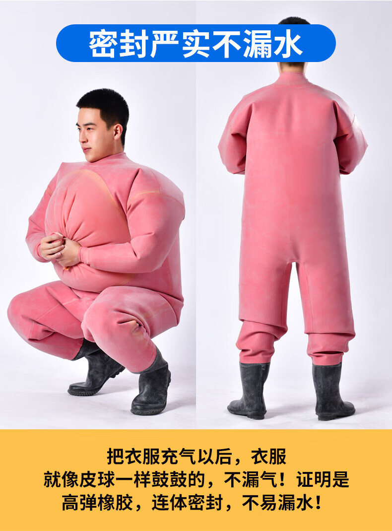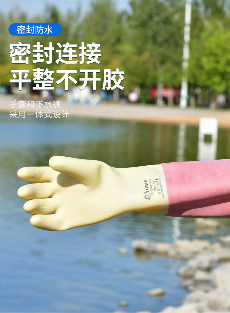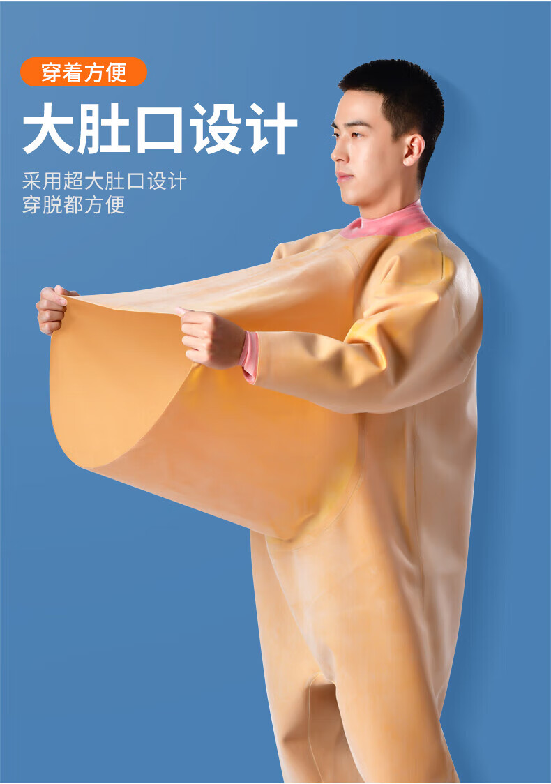 Yuyongji (YUYONGJI) full-body thickened rubber waders for catching fish, fully enclosed leather crotch jumpsuit, shoes digging and wading protection, thickness 120 silk, yellow rubber cuffs, 43 shoe size