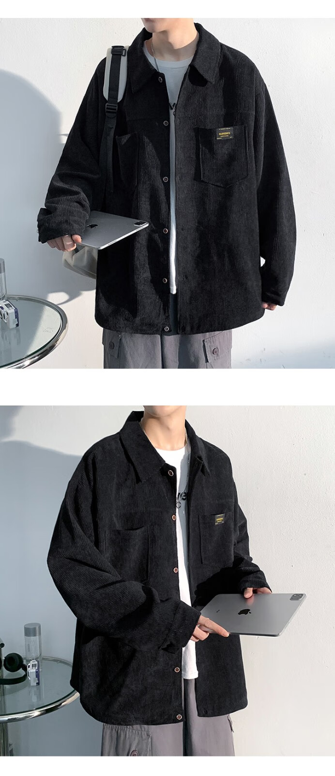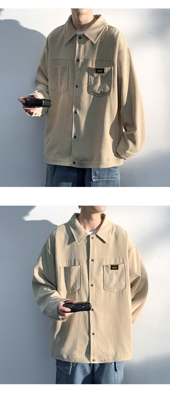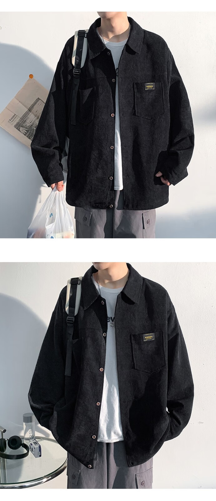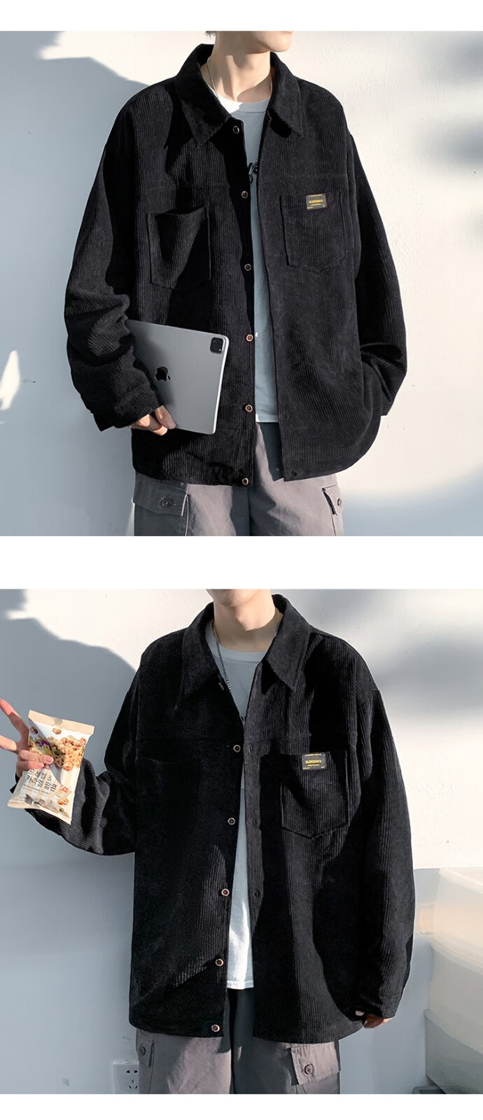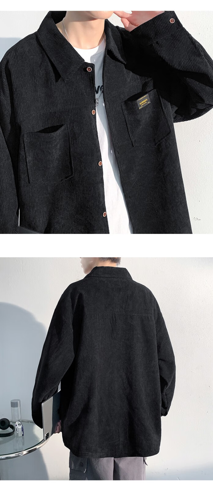 Baiqueting shirt men's 2025 autumn new Hong Kong style loose shirt jacket men's trendy brand fashion versatile casual tops black XL recommended 115-135 Jin Jin equals 0.5 kg